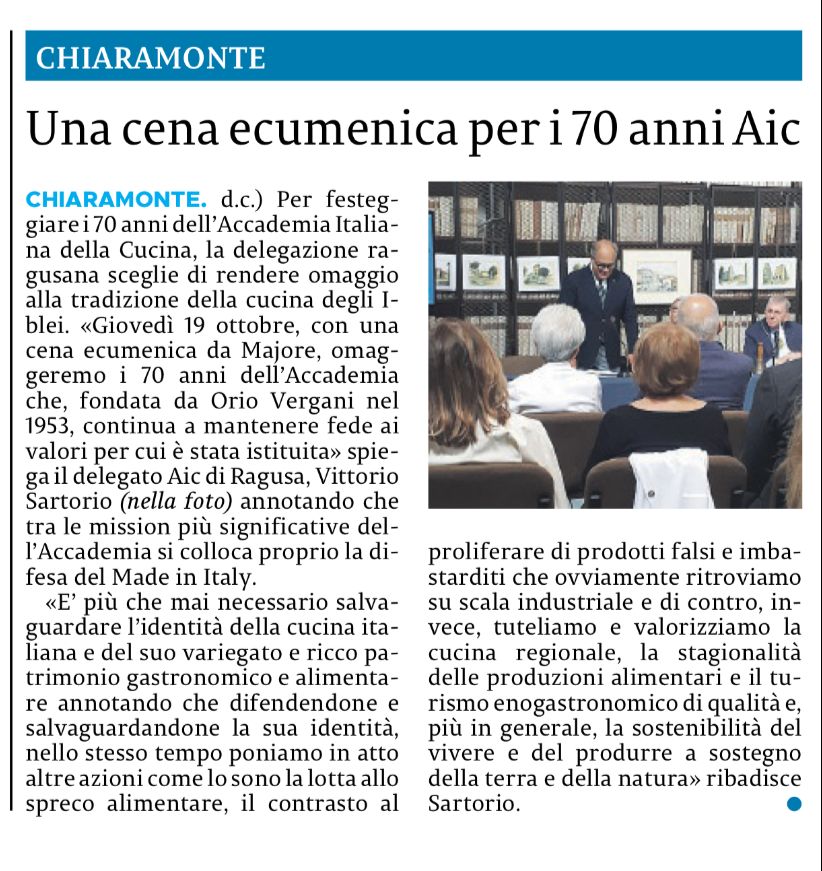 Delegazione di Ragusa: Convegno "La Cucina del Val di Noto e i suoi interpreti"
