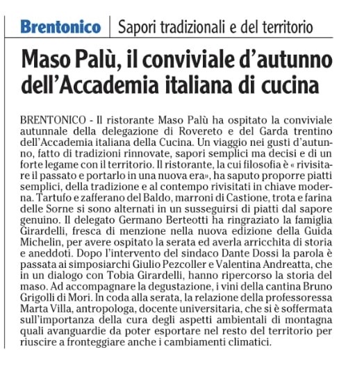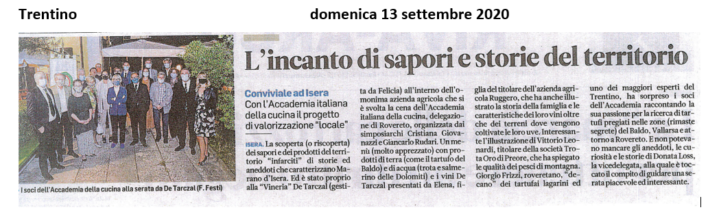 Riunione conviviale, organizzata dalla Delegazione di Rovereto, a base di prodotti tipici del territorio, giovedì 28 settembre