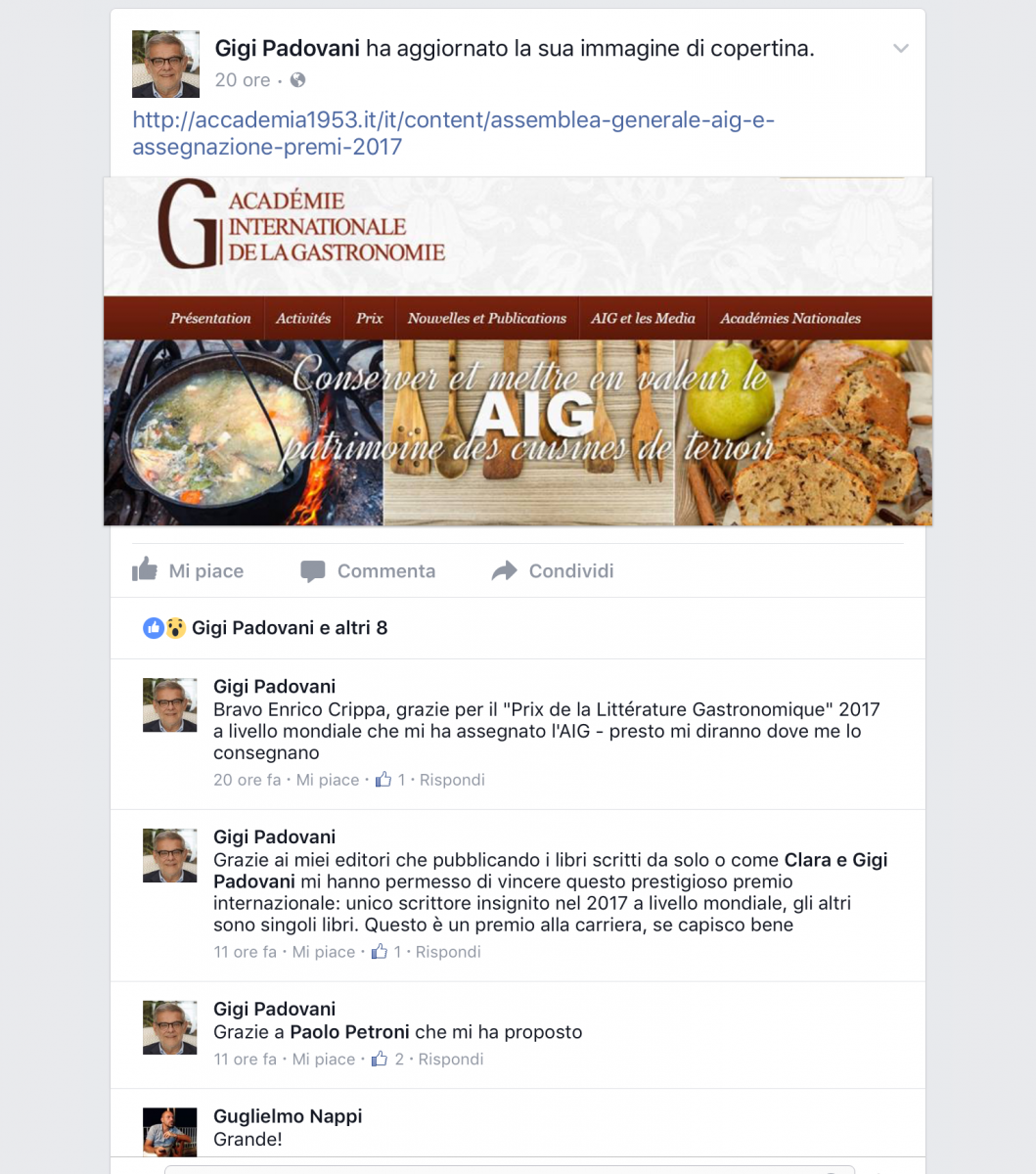 A Gigi Padovani il Prix de la Littérature Gastronomique 2017