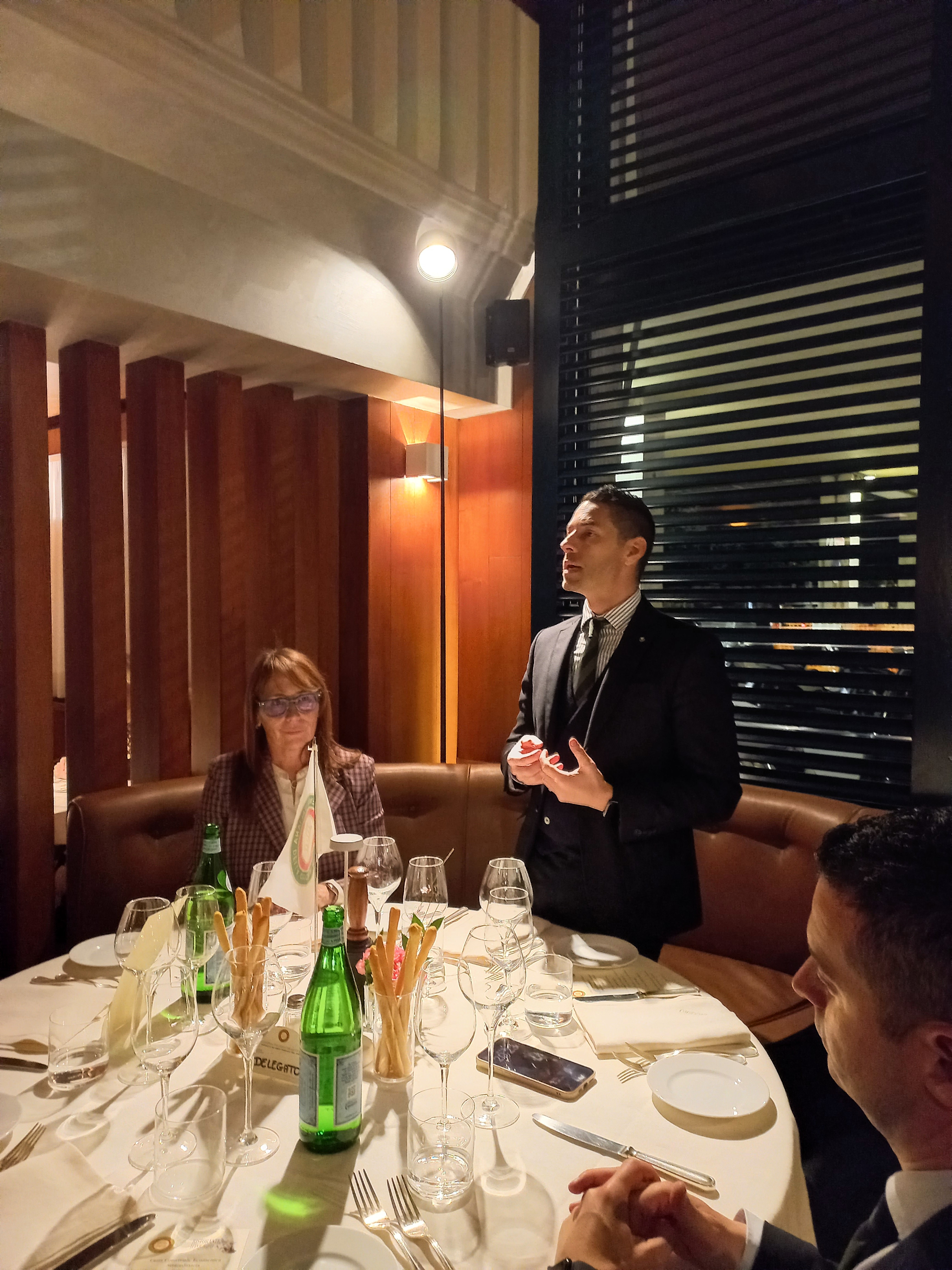 La Delegazione si è riunita presso il Ristorante Theo Randall dell’Hotel Intercontinental per l’Ecumenica Straordinaria dedicata alla cucina italiana quale Patrimonio Culturale Immateriale dell’UNESCO. All’evento hanno partecipato autorevoli rappresentanti delle istituzioni italiane nel Regno Unito: il Console Generale Domenico Bellantone, il Direttore dell’Istituto Italiano di Cultura Francesco Bongarrà, il responsabile dell’Ufficio Economico dell’Ambasciata Umberto Bernardo e il Presidente della Camera di Commercio Roberto Costa. Lo chef Theo Randall, già insignito del Diploma di Buona Cucina e recentemente dell’Onorificenza di Ufficiale della Repubblica O.S.I., ha accolto i partecipanti confermando il suo profondo legame con l’Italia. La sua proposta gastronomica si distingue per un’interpretazione rispettosa della tradizione culinaria italiana e per l’attenzione alla stagionalità degli ingredienti. La serata si è aperta con un aperitivo nella Park Suite dell’Hotel Intercontinental. In tale occasione il Delegato ha introdotto la proiezione del discorso del Presidente Petroni e successivamente è stato attivato un collegamento in diretta con lo stesso, accolto da un caloroso applauso. Il Delegato ha poi illustrato il percorso che ha portato alla decisione dell’UNESCO. Lo chef Randall ha accompagnato personalmente i circa settanta partecipanti al ristorante, dove ha avuto inizio il servizio al tavolo. Al termine della cena ha presentato la brigata di cucina, accolta da un lungo e sentito applauso. La serata si è conclusa in un clima di grande convivialità e allegria, rendendo omaggio alla tradizione gastronomica italiana e ai valori promossi dall’Accademia. Un sentito ringraziamento alla Simposiarca e Vice Delegata Sidney Ross per l’ottima organizzazione.