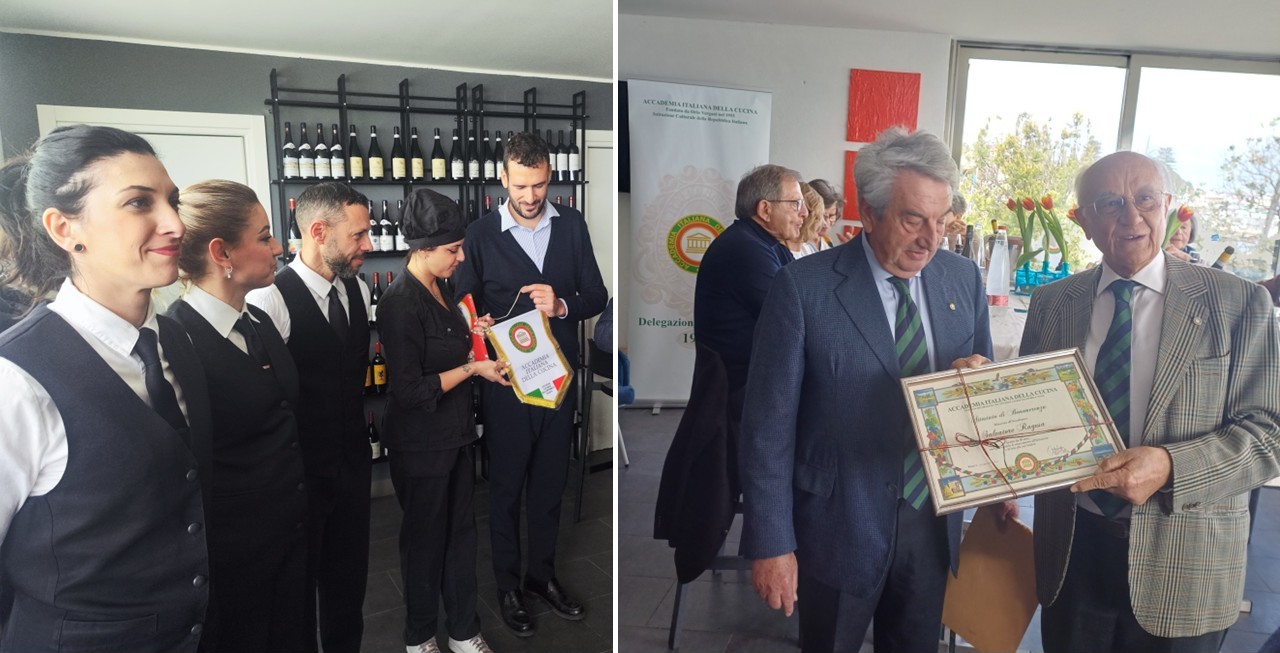 Per celebrare l’Ecumenica Straordinaria di riconoscimento della Cucina Italiana a Patrimonio Immateriale dell’Umanità, è stata scelta Villa Zucchero, una raffinata e accogliente dimora familiare, proprio per coniugare le motivazioni del tributo: saperi culinari, conviviali e sociali trasmessi di generazione in generazione su tutto il territorio nazionale, anche in ambito domestico. Il menu, attraverso ricette tradizionali trasformate dall’interazione affettuosa di diverse generazioni, è stato curato dall’Osteria Il Campanile, ristorante depositario, da oltre 40 anni, della tradizione gastronomica messinese. I piatti proposti da Mimmo Bonaccorso e dallo staff di cucina sono stati: l’antipasto rustico peloritano e il tagliere di formaggi e salumi del territorio; la pasta ‘ncaciata, il ricco timballo al forno siciliano, e le braciolette alla messinese con patate al forno. A completare la proposta, il tradizionale cannolo di ricotta, con l’iconica cialda fritta croccante e friabile farcita con crema di ricotta di pecora, e le zeppole di S. Giuseppe. Soddisfacente la proposta di un Nero d’Avola DOC Sicilia – Cantine Domina Miccina – Sambuca di Sicilia (AG). La riunione è stata aperta dall’intervento del Delegato sul significato del riconoscimento e sui passaggi che ne hanno caratterizzato il lungo iter, e dall’apprezzato videomessaggio del presidente Petroni, a cui ha fatto seguito la visione della clip di “Vai Italia”, l’inno di Mogol e Al Bano. La Consulta ha consegnato riconoscimenti e libri accademici a gestori e ristoratori.
