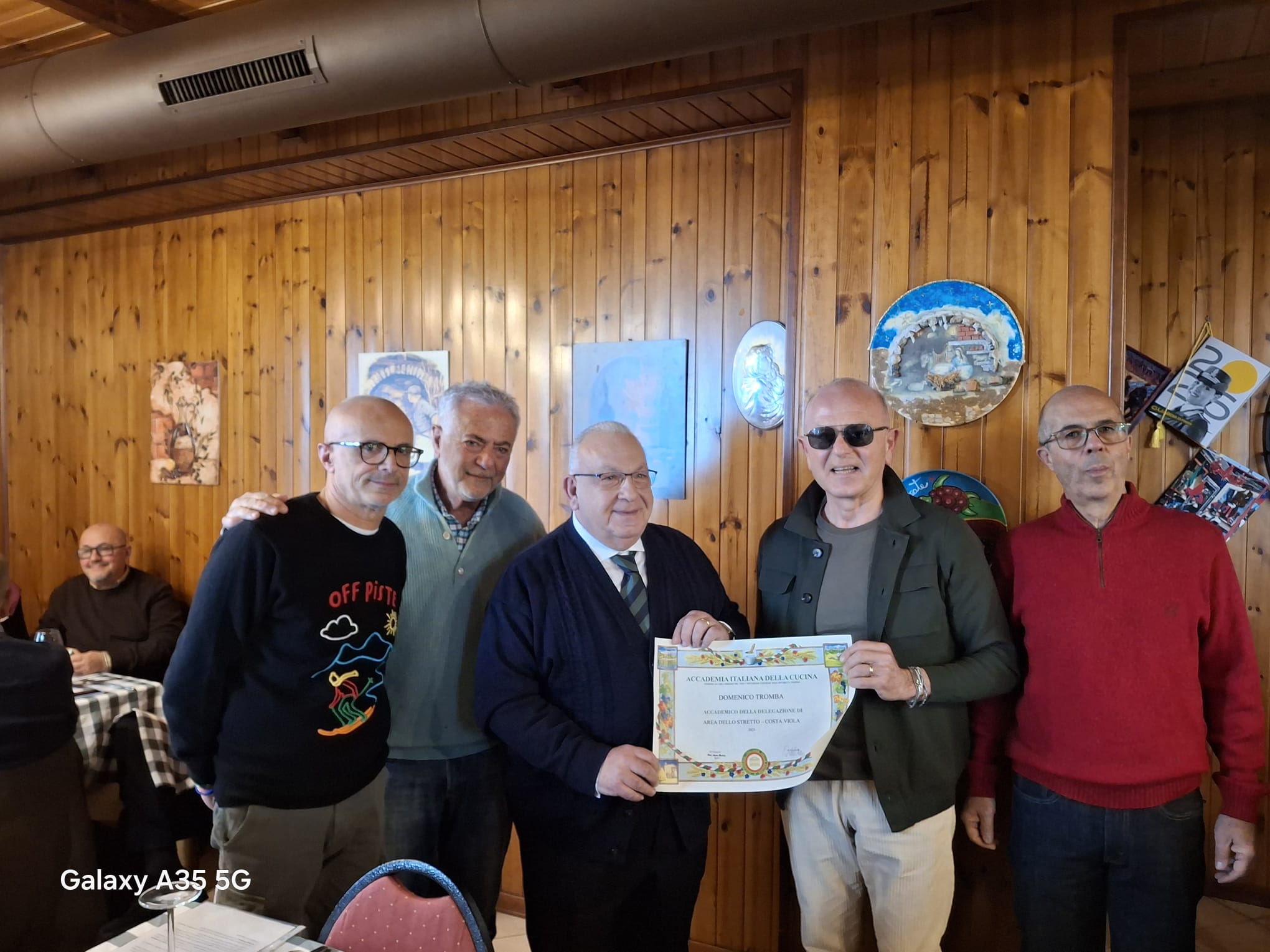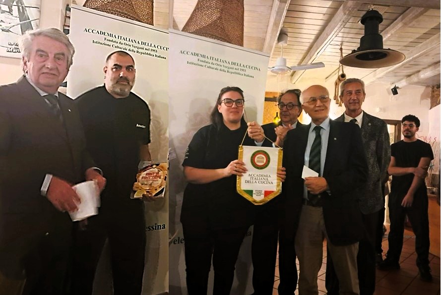 La Delegazione ha avviato gli appuntamenti 2026 visitando un ristorante specializzato nella cucina di pesce, guidato da una giovane imprenditrice, tesoriera dell’Associazione Provinciale Cuochi e Pasticceri di Messina: Carlotta Andreacchio, lady chef e patron de “La Trattoria del Marinaio” di Galati Marina, insignita nel 2025 dell’Arcimboldo d’Oro. Gli Accademici hanno verificato il menu degustazione elaborato, composto da 14 antipasti di mare crudi e cotti, calamarata dolcemare, risotto burrata e gamberi e gelato alla malvasia delle Lipari con crumble agli agrumi del maestro gelatiere Giuseppe Arena. Fondata nel 2013, la trattoria è divenuta un punto di riferimento per la ristorazione a base di pesce e, con il passaggio dell’attività dal padre nelle mani della figlia Carlotta, sono stati rinnovati i locali mantenendo un saldo legame con la memoria. Nel luglio 2020, l’offerta si è arricchita di piatti contemporanei e di una apprezzata cantina. In cucina, le regole sono quelle dettate dalla natura e dagli umori del mare, rispettando l’andamento delle stagioni, rimodulando il menu per far conoscere e apprezzare la varietà del patrimonio ittico dell’Isola e raccontare il territorio. Una suggestione che ha convinto gli Accademici, espressisi con una lusinghiera votazione anche per il servizio di sala, poi certificata dalla consegna del guidoncino, della vetrofania e di un libro dell’Accademia.