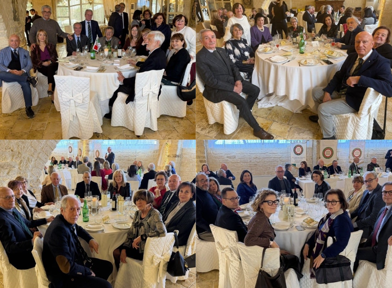 Le tre Delegazioni di Capitanata – Foggia, Gargano e Foggia-Lucera – si sono ritrovate per una riunione conviviale congiunta presso il ristorante “Le Querce di Mamre”, in una masseria dell’800 tra Foggia e Manfredonia. I Delegati Valerio Antonio Vinelli, Giuseppe Trincucci e Pietro Fatigato hanno invitato per l’evento la rappresentante Unesco Paki Attanasio, il Sindaco di San Marco in Lamis Michele Merla, l’On.le Giandonato Lasalandra componente della Commissione Agricoltura alla Camera, e la Senatrice Anna Maria Fallucchi componente della Commissione Agricoltura e produzione agroalimentare al Senato. Ha partecipato il Coordinatore Puglia Nord Vincenzo Rizzi. Dopo gli interventi dei Delegati e degli ospiti, il Delegato del Gargano Trincucci ha esposto il menu del pranzo, basato prevalentemente su prodotti del territorio circostante: ortaggi in pastella; carpaccio di bufalino con emulsione al balsamico; strudel ai carciofi, pinoli e uvetta su purea di patate viola; cavatelli al ragù bianco di bufalino e olive nere; maritata con verdure “ammische”, cardoncelli, guanciale e crostoni all’olio evo; bauletto di maialino farcito alla burrata con patate al rosmarino; “ciangularie” garganiche e torta celebrativa dell’evento con il logo dell’accademia sul Tricolore. Presenti oltre 100 persone tra Accademici, aspiranti Accademici e ospiti. Alla fine del convivio c’è stata la tradizionale consegna del guidoncino e della vetrofania dell’Accademia al titolare della struttura.