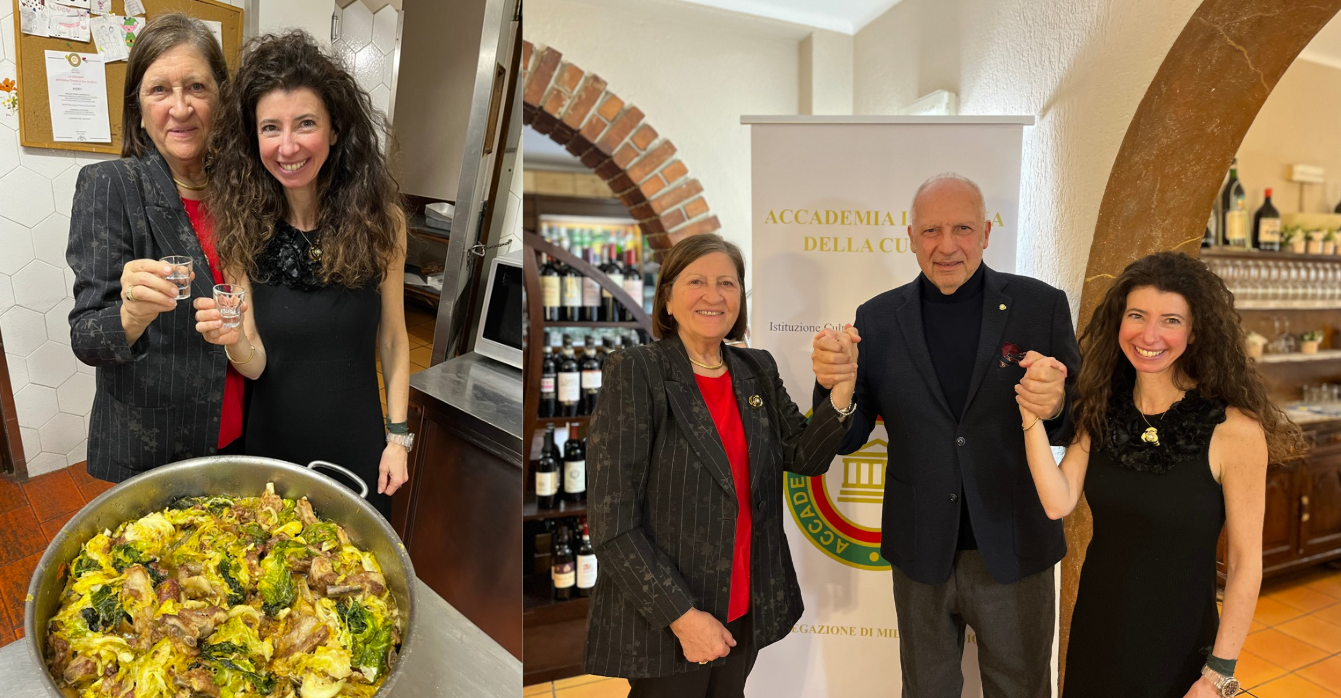 Gli Accademici sono stati accolti da Paolo Marmondi, oggi alla guida dell’Antica Trattoria di San Galdino, per la tradizionale Cassoeula nel proprio territorio. Un ritorno particolarmente caro in un luogo familiare, da sempre condiviso dalla Delegazione di Milano Navigli con la Delegazione di Milano Duomo. Insieme alla Delegata Maria Luisa Mandelli sono stati scelti alcuni piatti in ricordo di papà Gianni. L’occasione è stata anche propizia per visitare i meravigliosi affreschi leonardeschi nell’attiguo Oratorio di San Galdino, insieme a Paola Belcuore, che ha seguito i lavori di restauro. Fra gli ospiti il Delegato di Fermo Fabio Torresi, che ha donato l’esperienza dell’abbinamento con Passerina spumantizzata marchigiana per gli antipasti. Gusto, memoria e bellezza hanno reso onore alla convivialità. Cassoeula e zabaione da ricordare.