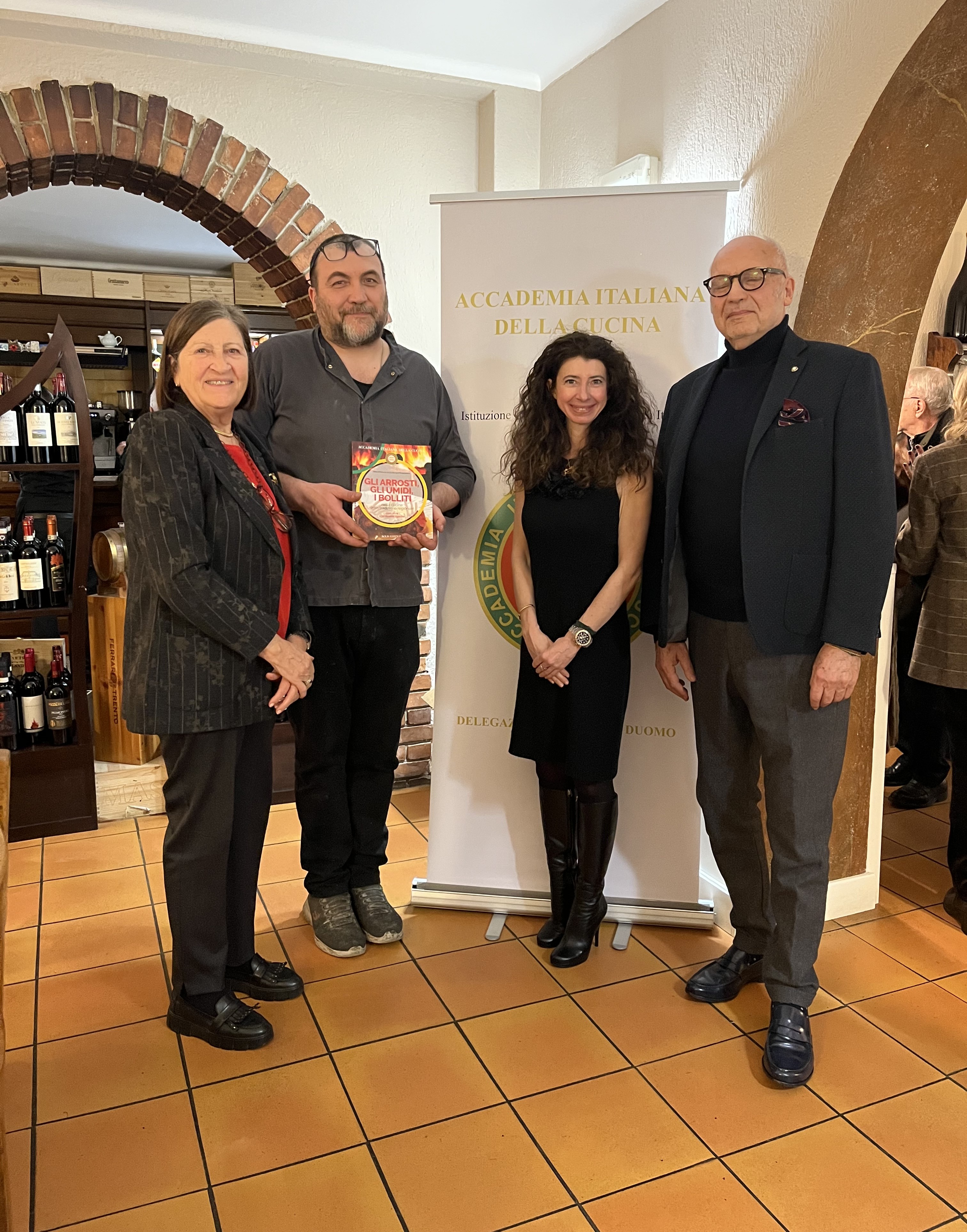 L’avvio dell’attività accademica del nuovo anno è stato celebrato con una serata al ristorante Ferrocinto dedicata ai panzerotti fritti, simbolo della cucina popolare meridionale, al casatiello, emblema della tradizione pasquale campana, e alla Varchiglia Cosentina, dolce iconico e identitario della città capoluogo di provincia. Protagonisti della degustazione l’estro dei maestri Antonio Nocerino per il salato e Stefano Renzelli per il dolce, accompagnati dai vini della cantina Ferrocinto raccontati dal titolare Luigi Nola e dalle creazioni dello chef Luigi Candreva, dell’omonimo ristorante, per un ideale percorso verso la Campania e ritorno. Il Direttore del Centro Studi Territoriale Ottavio Cavalcanti ha illustrato i legami e le contaminazioni tra le cucine dei territori coinvolti, arricchendo l’intervento con rare testimonianze a stampa sulla cucina meridionale. Il delegato Rosario Branda ha introdotto il tema sottolineando il valore simbolico del panzerotto e del casatiello, esempi di come ingredienti semplici diventino espressione di gioia, abbondanza e appartenenza, raccontando un Sud generoso e rispettoso delle tradizioni. Numerosa e partecipe la presenza degli Accademici, che hanno apprezzato l’originalità della serata e le sue suggestioni culturali e gastronomiche.