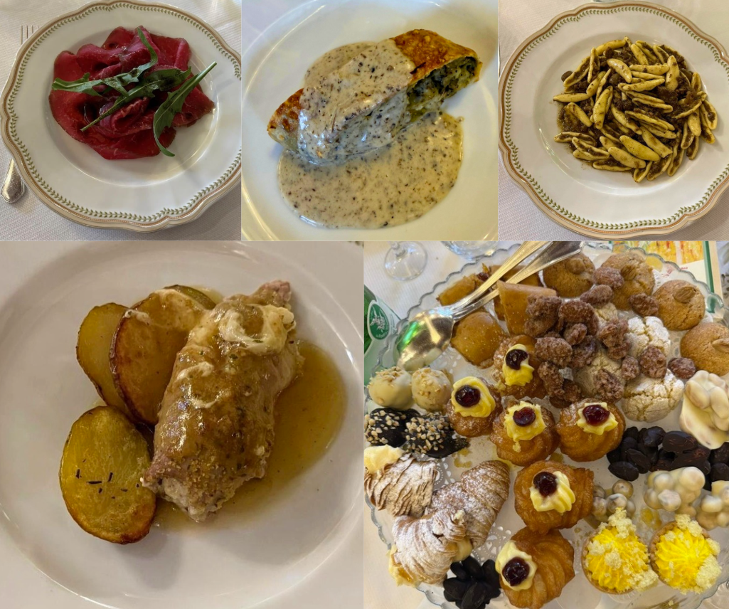 In occasione della Conviviale Ecumenica Straordinaria, la Delegazione di Cortina d’Ampezzo si è riunita presso il ristorante Rio Gere, appartenente alla famiglia Bellodis sin dal 1957 e gestito a quel tempo dai nonni dell’attuale proprietario e cuoco: luogo perfetto per portare in tavola piatti della tradizione ampezzana, come casunziei e kaiserschmarnn. La cucina locale nasce in una zona di passaggio con scambi commerciali fin dall’epoca romana. Cortina fu sotto la Repubblica di Venezia dal 1420, e poi sotto gli Asburgo dal 1511 fino al 1919, per questo la cucina unisce influenze venete e mitteleuropee. In origine era una cucina povera, legata alla sopravvivenza e alle risorse locali. Tra i piatti tipici ci sono casunziei, chenedi (canederli) e goulash. Molti dolci derivano dalla tradizione austro-ungarica, come strudel e kaiserschmarrn. La cucina ampezzana è quindi il risultato di tradizione locale e influenze storiche esterne, ed è necessario ricordarne le origini per non perdere identità e cultura.