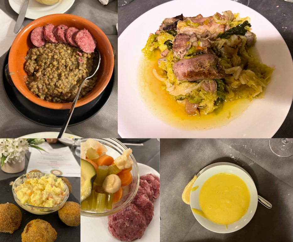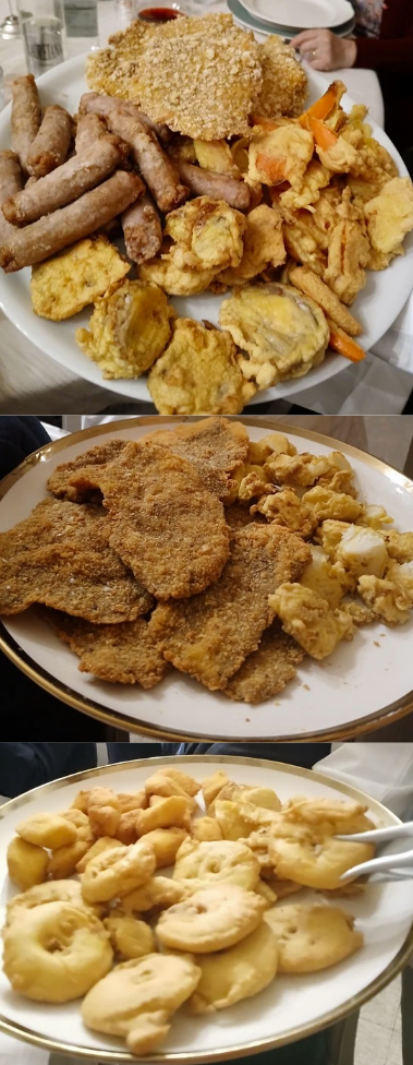 Dopo la tradizionale bagna cauda di gennaio, la Delegazione di Biella ha onorato il fritto misto piemontese. Il convivio si è svolto presso l’Osteria della Villa a Castellengo, un piccolo borgo dominato da un imponente castello. Il locale si trova all’interno di un antico caseggiato dell’800 che conserva stanze decorate ed affrescate ed offre una calda atmosfera. La cena si è basata esclusivamente sul piatto principe della cucina piemontese illustrato dalla Delegata Marialuisa Bertotto che ne ha raccontato l’origine storica, l’evoluzione, gli ingredienti classici e modaioli, le varianti regionali e la tecnica di cottura. Prima del fritto misto, gli Accademici hanno gustato una deliziosa cipolla cotta al forno per poi passare ad abbondanti porzioni dei tradizionali ingredienti di fritti: milanese di vitello, di pollo, e di maiale impanata in grattato di grissini, salsiccia, cervella, filone, granelli, fegato, cavolfiore, carota, zucchina, amaretto, semolino dolce, mela. Ha accompagnato la cena un vino del territorio. È stata una serata piacevole, armoniosa ed informale che si è conclusa con i ringraziamenti al gestore e cuoco Elion Keci al quale la Delegata Bertotto ha consegnato il piatto 2026 dell’Accademia.