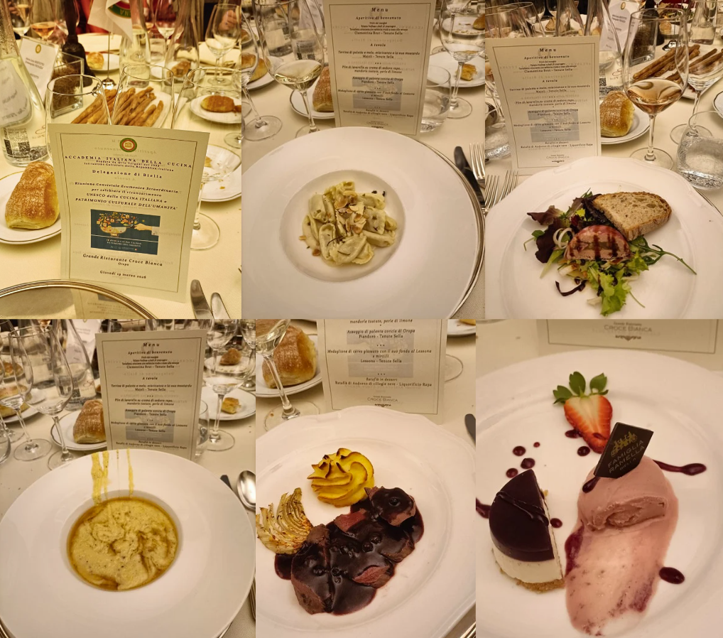 La Delegata di Enna Marina Taglialavore, anche presidente del Club UNESCO di Enna, ha aperto la serata organizzata al Federico II Palace Hotel ringraziando autorità e organizzatori, ricordando il ruolo collettivo che ha portato la cucina italiana al riconoscimento internazionale. Il Presidente nazionale della Federazione dei Club per l’UNESCO, Mauro Micale, ha salutato i presenti in videoconferenza. Hanno preso parte il Prefetto Ignazio Portelli, il Questore Cono Incognito, l’assessore alla Cultura del Comune di Enna Peppe La Porta, l’assessore alla Cultura del Comune di Agira Ausilia Cardaci e Ugo Serra, Segretario del Consiglio di Presidenza dell’AIC. Gli interventi hanno sottolineato il valore sociale e identitario della tavola come luogo di incontro e condivisione. È emersa la consapevolezza che il riconoscimento UNESCO non sia solo celebrazione della qualità gastronomica, ma anche responsabilità, come evidenziato da Taglialavore: conservare, studiare e tramandare pratiche e saperi per mantenerli vivi e autentici. L’Accademia si propone come guida in questo percorso, collaborando con istituzioni e associazioni per valorizzare le tradizioni locali. La cena ha unito radici e pregio: macco di fave, cuori di carciofi, ricotta locale, sformatino di bucatini con sarde, falsomagro e dessert Federico II, applaudito per equilibrio e tecnica. Oltre al gusto, la serata ha offerto una riflessione sui valori immateriali della cucina: memoria, identità, convivialità e legami sociali, ribadendo come il successo della cucina italiana derivi anche da uno stile di vita fondato sulla condivisione.