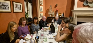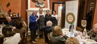 La Conviviale Ecumenica della Delegazione Valdarno Fiorentino si è tenuta al ristorante "Il Caminetto del Chianti". Il Simposiarca Gianni Gerini ha concordato con il cuoco un menù pienamente corrispondente al tema di questo anno “Gli Arrosti, gli umidi e i bolliti”. Pietanze semplici, preparate con ingredienti del territorio, secondo le ricette tipiche del Valdarno Fiorentino. Salsa verde per l'antipasto, tortellini Baragazza in brodo e lesso rifatto con le cipolle per testimoniare il riuso del bollito, come si usava un tempo. Sana abitudine che si tramanda e si mantiene ancora oggi. Alla Ecumenica hanno partecipato numerosi ospiti che insieme agli Accademici hanno contribuito a tenere vivo lo scopo della serata: simboleggiare l'unione spirituale e rafforzare il senso di comunità tra i membri. La serata si è conclusa con i complimenti alla brigata di cucina cui è stato donato il piatto commemorativo dei 70 anni dell'Accademia.