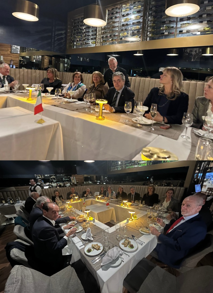 La cena ecumenica di Tel Aviv si è svolta presso il ristorante Ernesto 90, con la cucina dello chef italiano Emanuele di Porto. L’evento è stato organizzato con un menù ispirato al tema di quest’anno, "gli arrosti, gli umidi e i bolliti". Durante la serata sono stati distribuiti libri accademici sull’argomento e uno di essi è stato donato al proprietario, Ernesto Marcheria, che da oltre vent’anni promuove il vero cibo italiano romano a Tel Aviv. L’Accademica Nessia Laniado ha condiviso aneddoti riguardanti arrosti, umidi e bolliti nella tradizione culinaria italiana. La scelta del ristorante Ernesto 90 per la cena ecumenica è stata motivata dalla sua reputazione come locale rappresentativo, in grado di offrire un autentico menù italiano di carni. Lo chef ha proposto come antipasto lingua salmistrata in salsa verde; per primi, tortellini in brodo e pappardelle al ragù con funghi porcini; per secondi, manzo, pollo e lingua bolliti, stracotto come umido e arrosto di manzo; infine, a conclusione della cena, crème caramel, il tutto accompagnato da Montepulciano d’Abruzzo. La serata si è rivelata molto riuscita, con la partecipazione di numerose personalità della vita pubblica di Tel Aviv e con la presenza di quasi tutta la Delegazione.