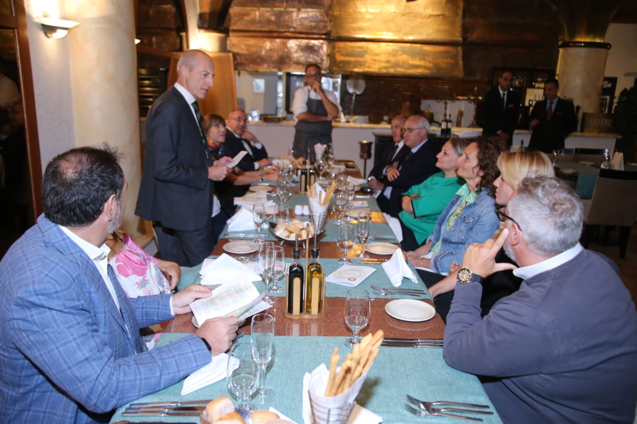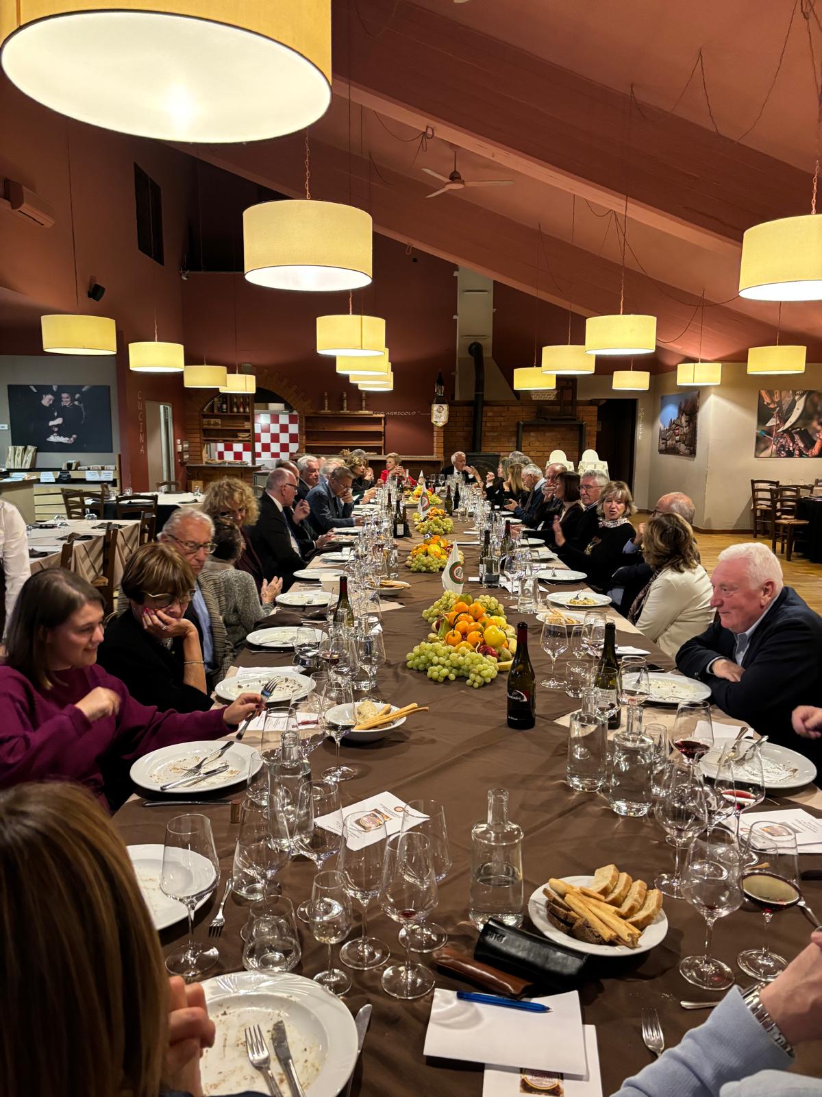La Delegazione del Monferrato si è riunita per la Conviviale Ecumenica a Casale Monferrato, ospitata dall’accogliente Osteria Amarotto, punto di riferimento della cucina tradizionale casalese. Per celebrare l’evento, la Consulta della Delegazione ha scelto di dedicare la serata all’arrosto ed in particolare a tre carni: anatra, faraona e oca, ciascuna arrostita con la medesima procedura ma accompagnate da contorni diversi (radicchio, patate al forno e verza). Il menù comprendeva, oltre al benvenuto della cucina, una terrina di faraona, salame d’oca, friciulin e un delizioso dessert di frappe con crema e frutti di bosco. La degustazione orizzontale dei tre arrosti, apprezzata per originalità e rigore, ha suscitato grande entusiasmo tra Accademici e ospiti, offrendo l’occasione di riscoprire carni tipiche della tradizione monferrina, oggi un po’ desuete. Il Delegato, dopo aver illustrato il menù, ha relazionato sul tema dell’anno e aggiornato i presenti sul recente Forum di Bari, condividendo le preziose informazioni dispensate ai Delegati e Legati di tutto il mondo.