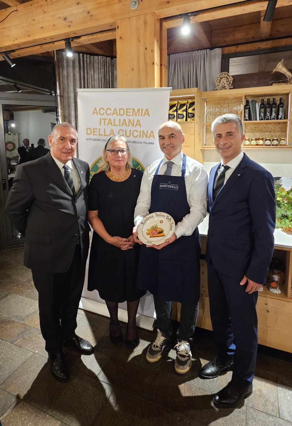 Il tema di quest’anno è stato interpretato dai Simposiarchi della Delegazione di Terni, Federico Carli e Giuseppe Malvetani, con uno sguardo ampio e coraggioso, capace di oltrepassare i confini territoriali per tracciare un percorso che ha attraversato tutto lo Stivale. Il viaggio gastronomico è iniziato con un bollito misto accompagnato da mostarda di Cremona, giardiniera e salsa verde, per poi proseguire con le mezze maniche alla coda alla vaccinara, simbolo del quinto quarto e della cucina popolare, capace di trasformare la necessità in virtù. Il secondo, un piccione ad arrosto morto con broccoletti ripassati, ha riportato il racconto alle radici umbre. Anche il percorso enologico, coerente e narrativo, ha avuto un ruolo centrale, così come l’olio extravergine “Nuovo” dell’Azienda Malvetani, a suggellare il legame con il territorio. Momento di particolare rilievo è stato l’intervento di Giuseppe Fatati, direttore del Centro Studi Territoriale Umbria dell’Accademia, che ha proposto una visione attuale della dieta mediterranea: non uno schema rigido, ma uno stile di vita sostenibile che unisce salute, territorio e comunità. La Cena Ecumenica si è così inserita in un più ampio progetto di valorizzazione della cultura culinaria italiana, arricchito quest’anno dall’ingresso del nuovo Accademico Andrea Carducci e dalla celebrazione dei 40 anni di appartenenza di Giulio Pallotta, esempio di dedizione e passione.