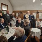 Cena ecumenica al ristorante La Kiuva di Arnad con un menu predisposto dal Simposiarca Cesarino Collé rigorosamente a base del tema della serata: finissima di carne salée con insalata croccante e dressing di noci; bis di pappardelle al ragù di cinghiale e gnocchetti di castagne con fonduta al Bleu d’Aoste; carbonade di manzo cotto allo Chardonnay con polenta; torta di compleanno della Delegazione Monterosa. Al termine della serata, l’Accademico Robert Rosset ha presentato l’edizione 2025 del volume della Biblioteca di Cultura Gastronomica dell’Accademia intitolato “Gli arrosti, gli umidi, i bolliti nella cucina della tradizione regionale”. Oltre alla cena ecumenica gli Accademici hanno festeggiato la ricorrenza dei venti anni della Delegazione Monterosa con una meravigliosa torta preparata per l’occasione da Gloria della pasticceria Gatò di Aosta. Gradito ospite, il Presidente della Regione Valle d’Aosta Renzo Testolin, da sempre amico della Delegazione e dell’Accademia Italiana della Cucina.