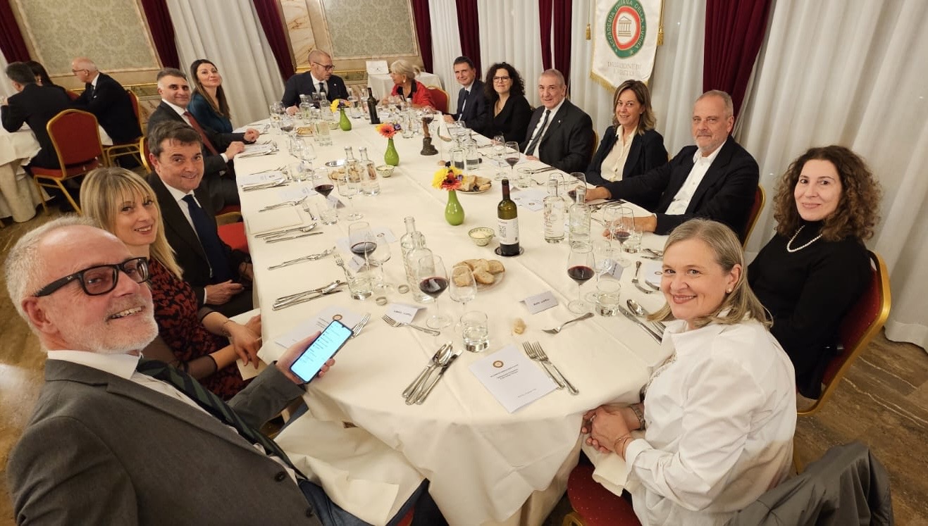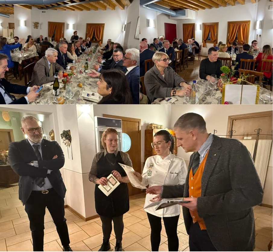 Bella e partecipata la prima riunione conviviale dell’anno 2025 della Delegazione di Rovereto e del Garda Trentino, organizzata dai Simposiarchi Cristiana Giovanazzi e Roberto Locatelli, svoltasi presso il ristorante “Novecento” a Rovereto. Sono intervenuti la Sindaca del Comune di Rovereto Giulia Robol, la Direttrice dell’Azienda di promozione turistica di Rovereto, Vallagarina e Monte Baldo Carla Costa, il Presidente della Fondazione Museo Civico di Rovereto Giovanni Laezza, il Presidente del Tribunale di Rovereto Giulio Adilardi e la Presidente di Dolomiti Energia S.p.A. Silvia Arlanch (foto 1 e 2). Per festeggiare l’ottavo “compleanno” della Delegazione, costituita ufficialmente il 19 gennaio 2017, erano presenti anche la Coordinatrice Territoriale e Delegata di Bolzano Isabella Jone Beretta ed il Delegato di Verona Fabrizio Farinati (foto 3). Molto interessante e stimolante la relazione svolta dal prof. Gianluca Esposito, Direttore del Dipartimento di Psicologia e Scienze cognitive dell’Università degli Studi Di Trento. Molto apprezzati, nel menù, il flan al broccolo di Torbole e il bollito misto (foto 4).