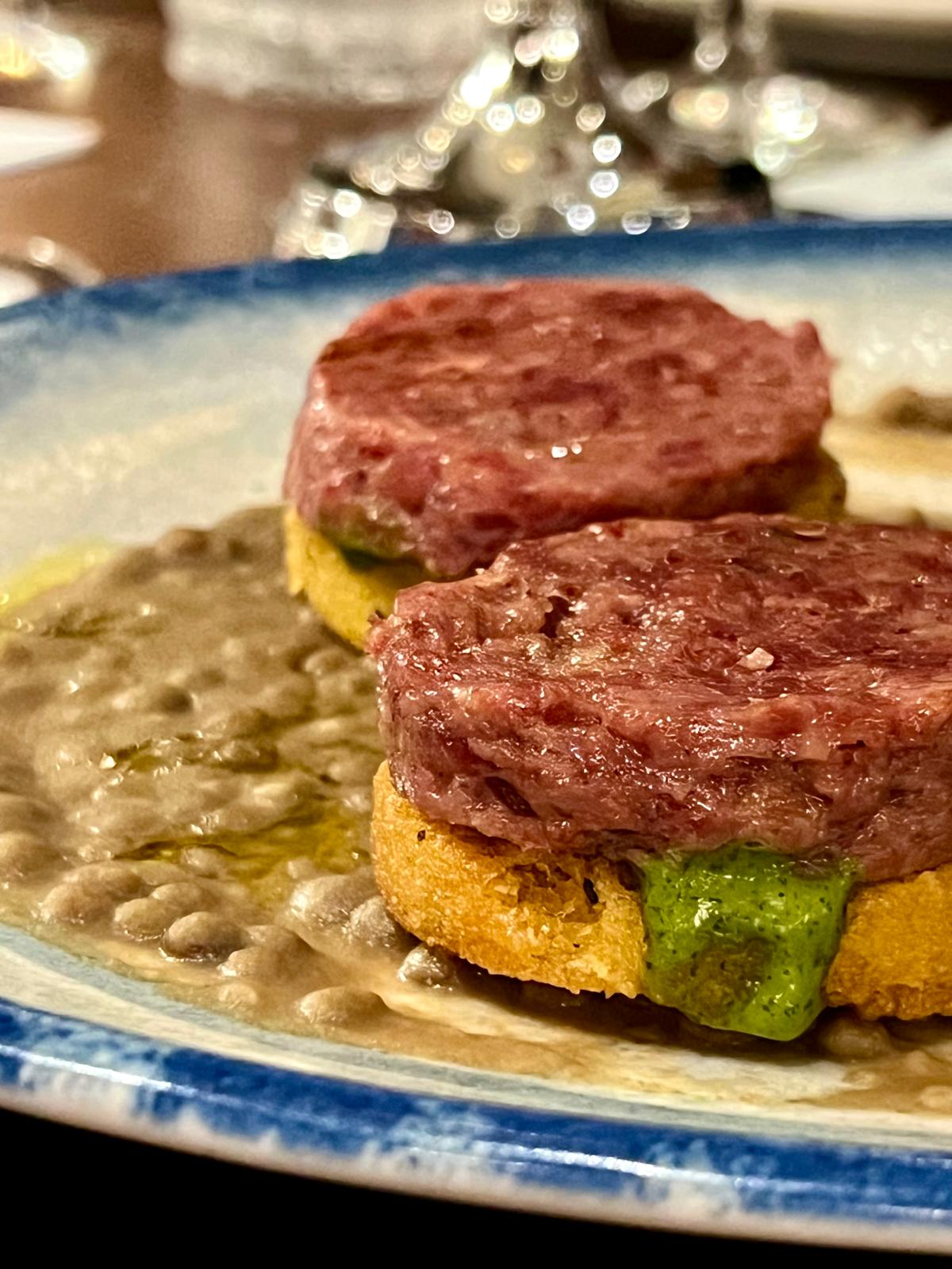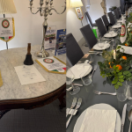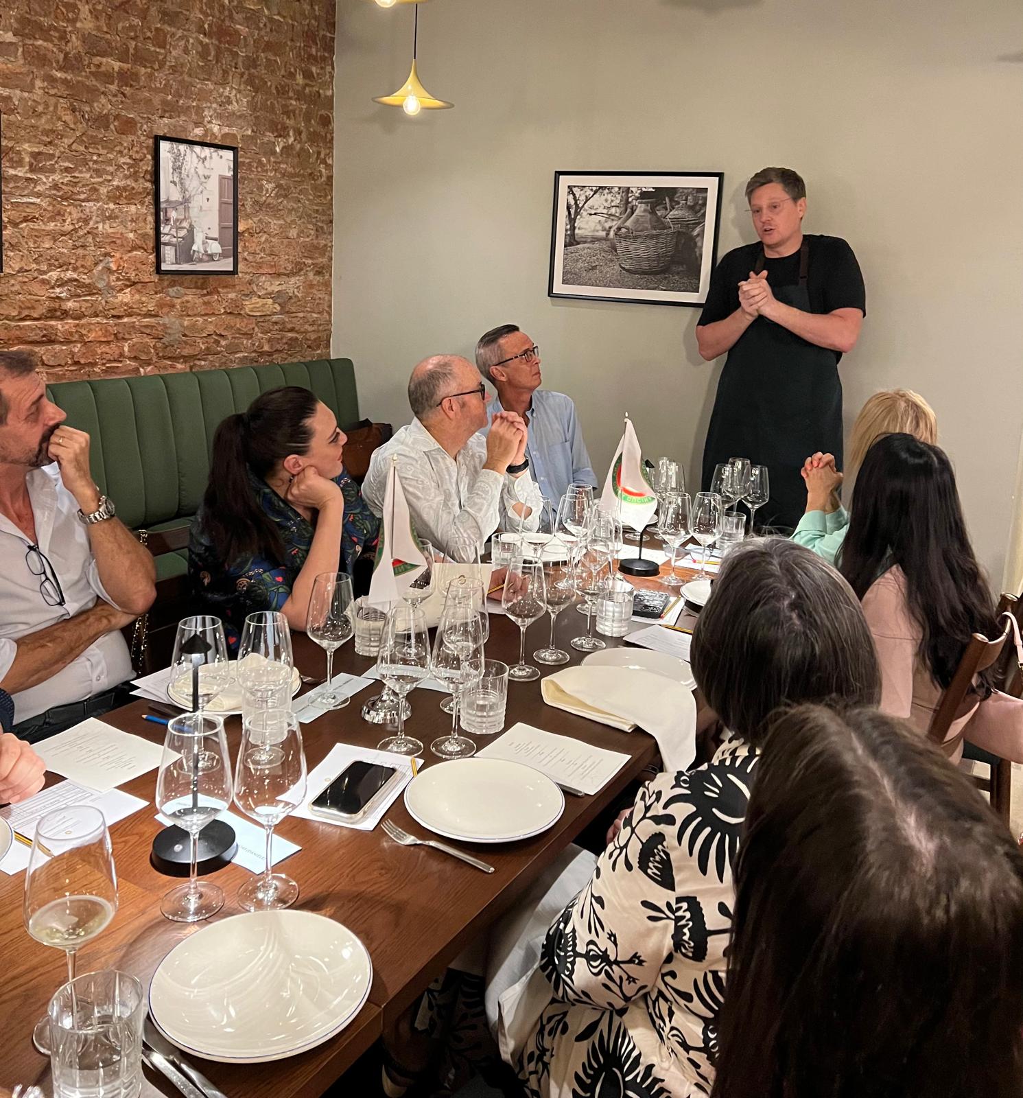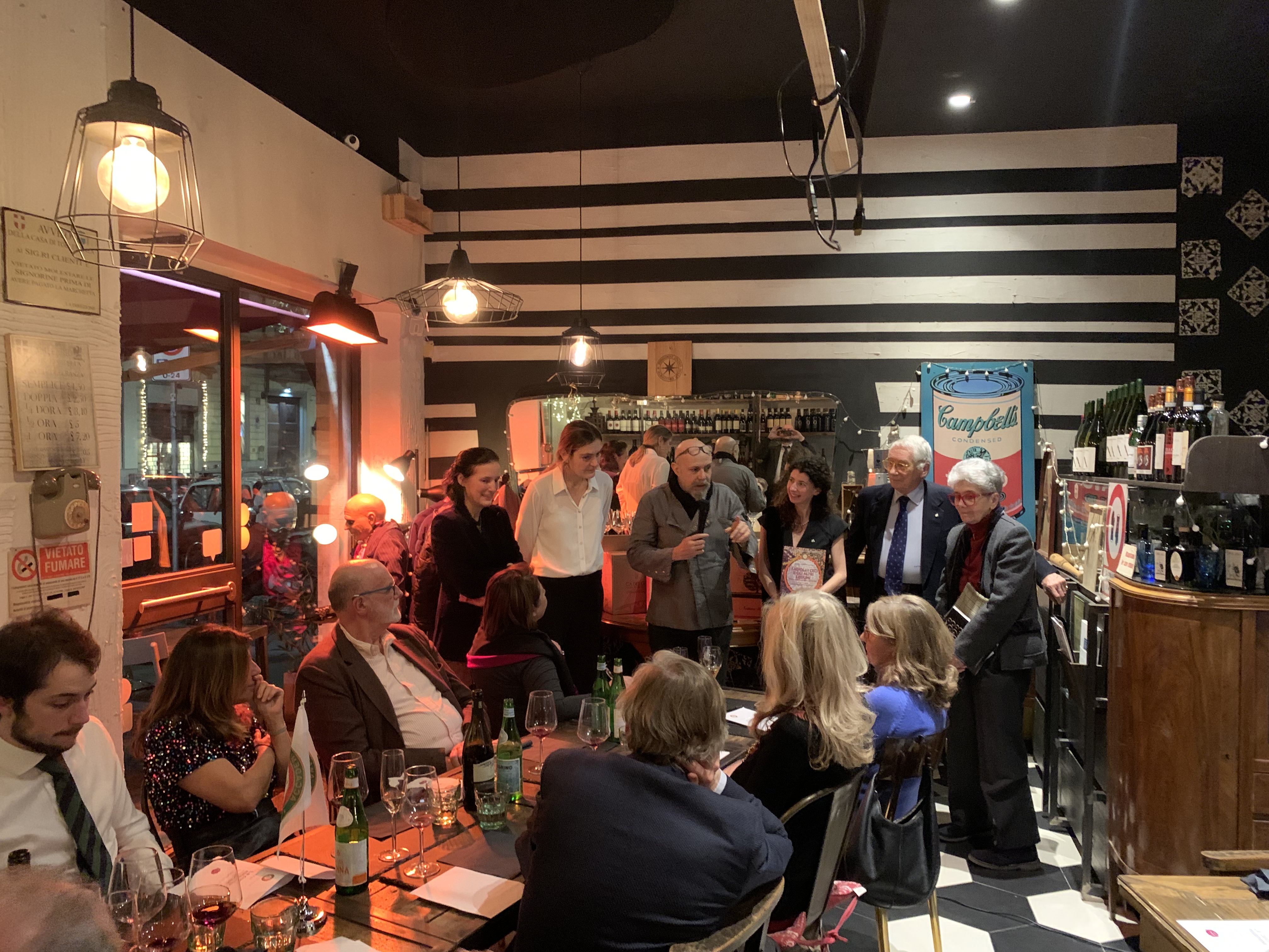 Sotto la guida dello chef Simone Mambretti del ristorante El Mora, le Simposiarche Isabella Lechi e Rosanna Corazza hanno proposto un’esperienza culinaria vicina alla tradizione milanese. La serata si è avvalsa di una breve lectio della scrittrice di romanzi storici Patrizia van der Noot, che ha offerto un approfondimento sull’evoluzione della cucina italiana e francese nei secoli, e della presenza di un graditissimo ospite, Dino Betti van der Noot - Consigliere di Presidenza e Delegato di Milano - che ha raccontato delle tradizioni gastronomiche locali. Interessanti gli antipasti, con l’accostamento di sapori insoliti come gorgonzola e champagne, tartufo e mortadella. In linea con il punto di forza del ristorante, specializzato nella cucina di carne, la pasta con brasato e l’ossobuco, in abbinamento a vini lombardi.