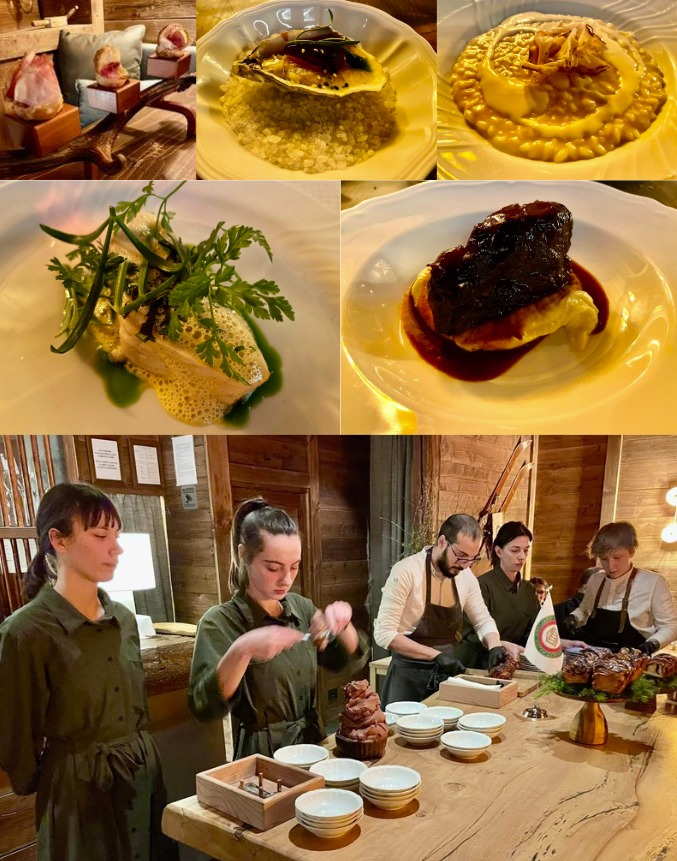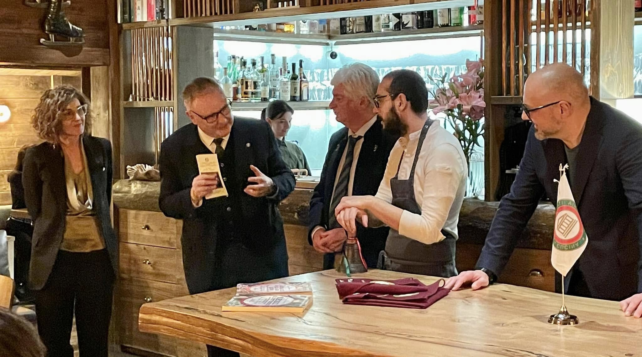 Nella calda e accogliente atmosfera della Baita Piè Tofana, alle porte della festa di San Valentino, la Delegazione di Cortina d’Ampezzo ha dedicato la riunione conviviale di febbraio al tema “Afrodite a tavola”, trattato con sapienza e leggerezza dall’Accademica Paola Franco, che in un rapido excursus storico e culinario ha presentato il come ed il perché della tradizione dei cibi cosiddetti afrodisiaci. Il menu non poteva certo essere da meno: il cuoco Federico Rovacchi, con i Simposiarchi Monica De Mattia e Diego Dipol (rispettivamente Delegata e Vice Delegato) ha presentato in tavola una serie di squisitezze dedicate all’argomento della serata. Tra i cibi afrodisiaci non potevano certo mancare l’ostrica alla brace, le spezie del salmerino, la salsa piccante della guancia di manzo fondente ed il cioccolato, declinato sia come gelato che come golosa salsa calda da accompagnare alla babka, dolce tipico dei paesi dell’est Europa. Gradito ospite della serata, caratterizzata come sempre da sapiente e puntuale servizio, il Delegato Onorario di Gorizia Roberto Zottar.