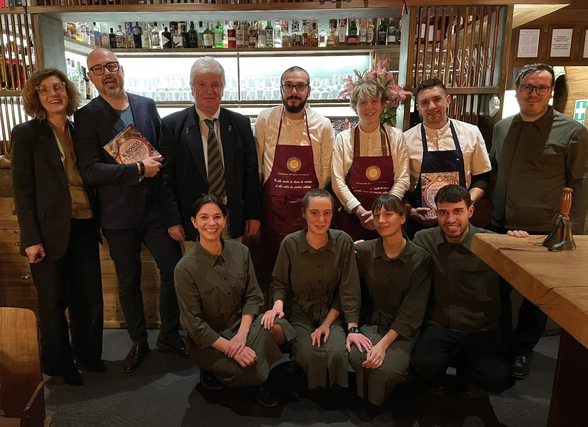 Come da tradizione, gennaio è dedicato alla buona cucina che trionfa con la Cassoeula. La Delegazione è stata ospite della trattoria urbana de El Barbapedana, fra i suoi cappelli da cantastorie, i canti meneghini e le fisarmoniche d’epoca. il patron è Angelo Ambivero, che dopo l’esperienza da Cova, Sant’Ambroeus e per il catering del Savini, scelse nel 2004 di aprire il suo posto dei ricordi e dei sogni, vicino alla stazione di Porta Genova. E che, con un accento impeccabile, ha recitato la poesia de el Barpapedana in milanese. Simposiarca Riccardo Belotti, estimatore e attento conoscitore del piatto principe, che ha ammaliato insieme alle altre portate gli Accademici in un’atmosfera d’antan. Su questo sfondo Isabella Lechi si è presentata in qualità di neo Accademica rivelando la sua esperienza giornalistica. Con un finale a sorpresa di Maria Luisa Mandelli, Coordinatore Territoriale Lombardia Ovest e Delegata di Milano Duomo.