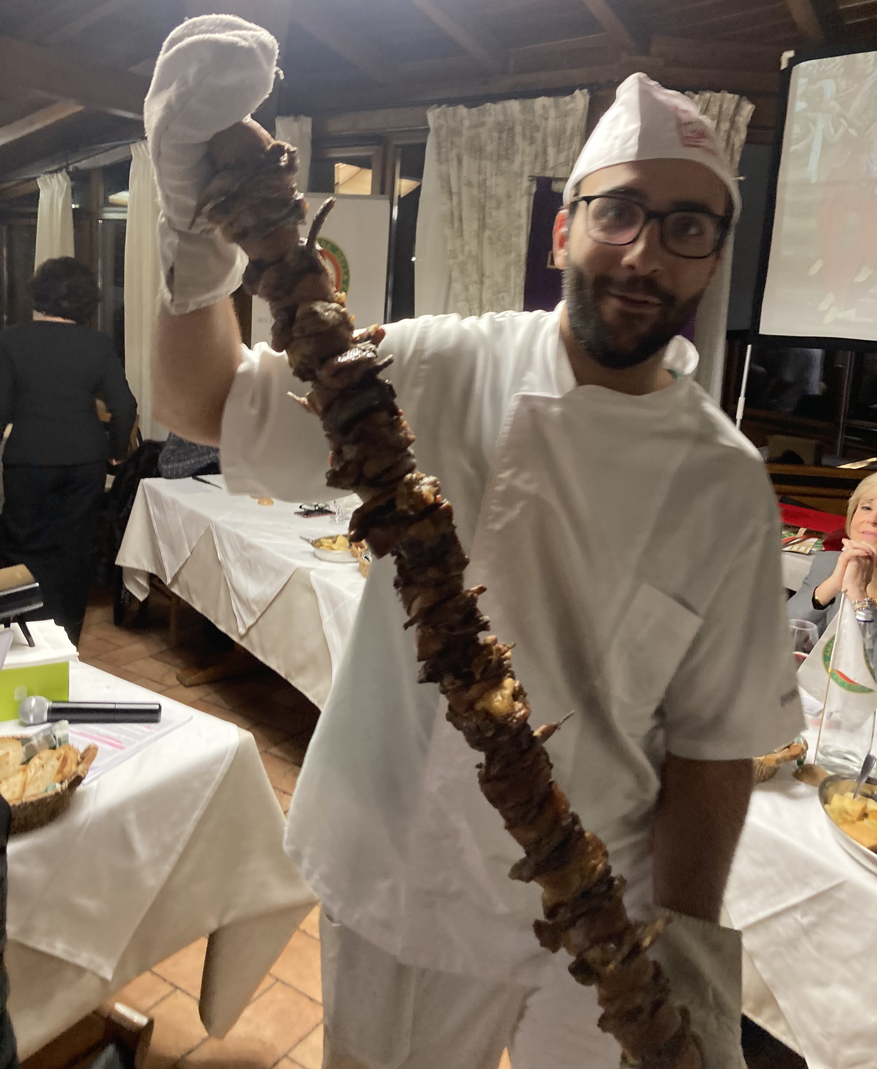 Il tema della serata "Ovini e non solo arrosticini", presso il ristorante Taverna de li Caldora a Pacentro, è stato sapientemente ed esaustivamente illustrato dai due relatori Rosa Giammarco ed Antonio Santilli, con un viaggio nei luoghi della transumanza tra storia, antiche tradizioni e ricette locali. La Simposiarca Chiara Buccini con le cuoche Teresa e Margherita hanno scelto un menù che si è adattato perfettamente all’occasione. Una serata davvero ben riuscita sia dal punto di vista culturale che gastronomico.