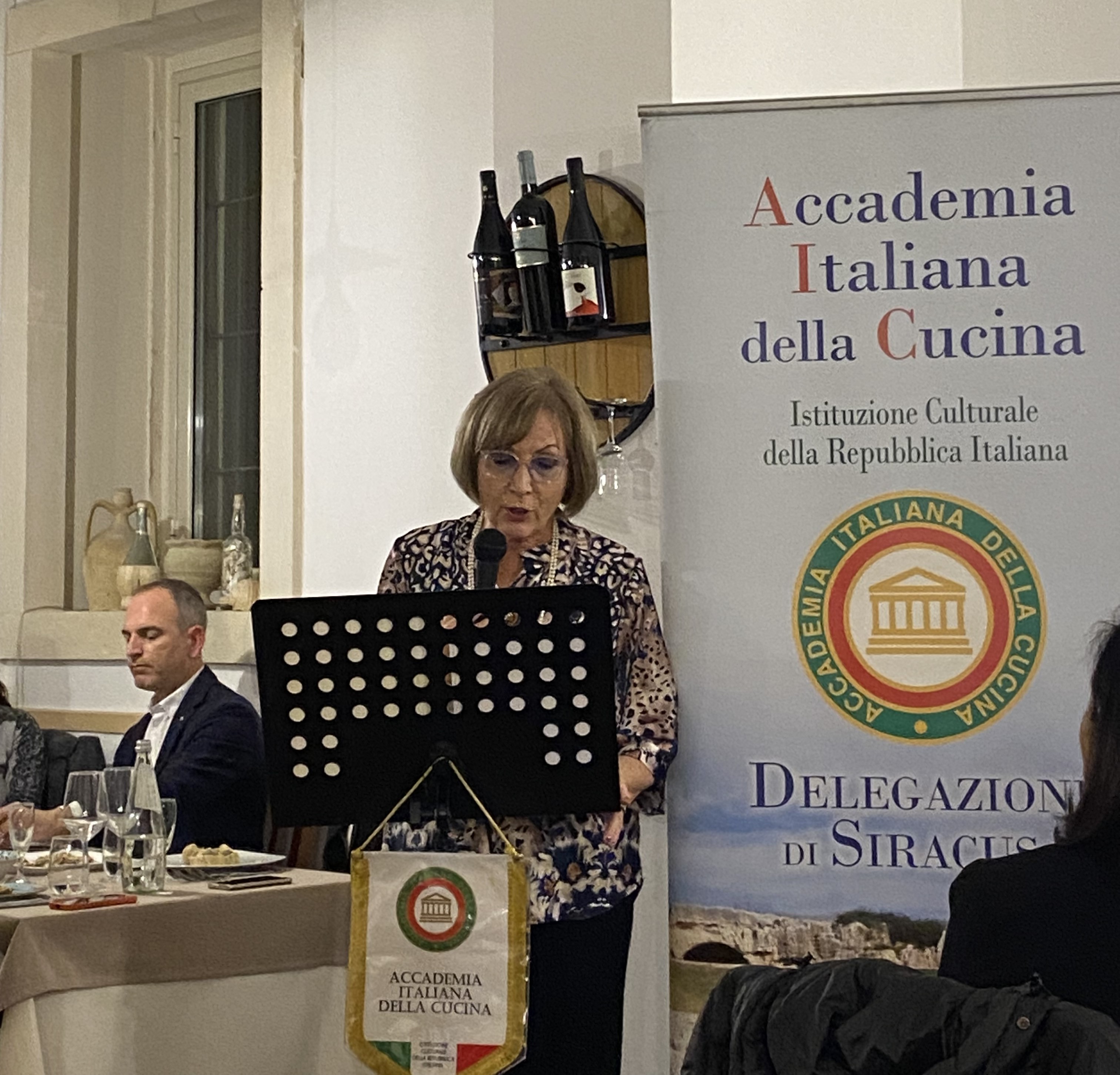 Riunione conviviale presso il ristorante Darsena di Siracusa, una piacevole occasione che ha visto come Simposiarca della serata l’Accademica Isabella Meloni che ha intrattenuto i presenti con un’affascinante relazione sulle memorie orientali nei piatti della cucina italiana. Attraverso la descrizione delle pietanze e dei sapori ha consentito un volo pindarico concluso con la degustazione di alimenti attinenti all’argomento: frutta secca, melenzane, cous cous sapientemente preparato con la tecnica dell’“incocciatura”, per finire con il dolce siciliano, la cassata, con evidenti influenze orientali. L’aspetto grafico del menù è stato curato nei dettagli e reso originale dalle immagini tratte da dipinti personali della Simposiarca. Serata gradevole che ha segnato l’inizio del 2025 all’insegna della piacevole convivialità e della ricerca accurata di nuovi ristoratori del territorio.