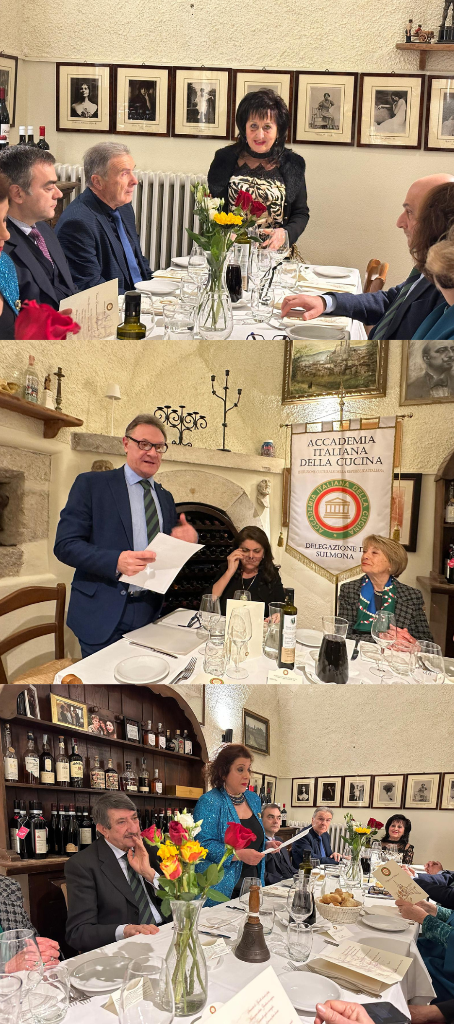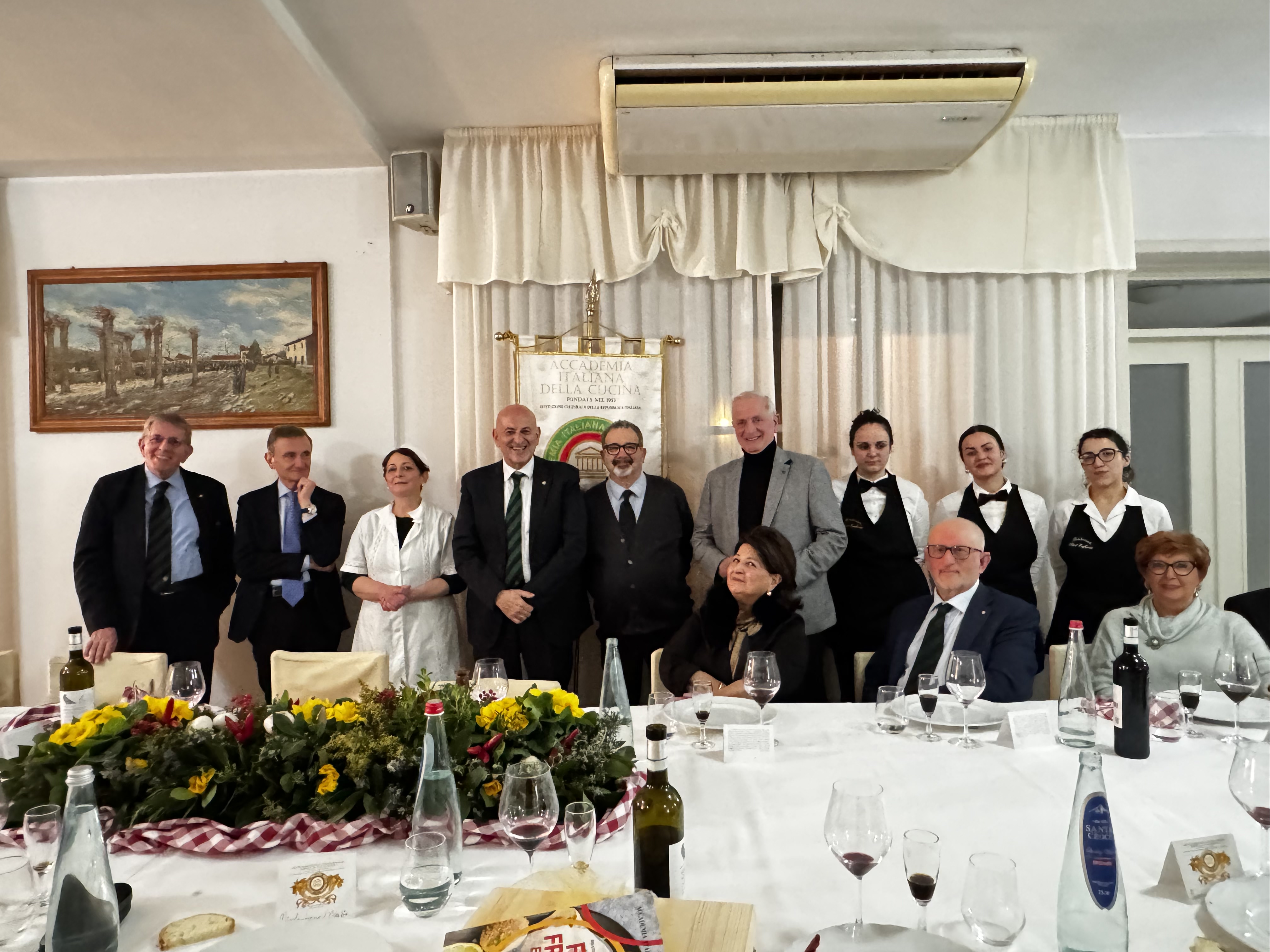 La prima riunione conviviale dell’anno si è svolta in un accogliente e raffinato ristorante che occupa gli ambienti di un antico mulino, accuratamente ristrutturato e ben arredato, a conduzione familiare. Dopo i saluti, la Delegata Rosetta Cartella ha commemorato con un minuto di raccoglimento e un ringraziamento per la lunga ed encomiabile attività, l’Accademico Archimede Corbo, socio fondatore della Delegazione, recentemente scomparso. Un momento toccante è stato il ricordo della prof.ssa Gabriella Portalone, come uomo, come medico, appassionato di cucina e di cultura gastronomica. Anche gli Accademici Umberto Bartoccelli e Salvatore Lauricella lo hanno ricordato con riflessioni profonde e commoventi. Subito dopo la nutrizionista Erika Di Lucia ha relazionato e illustrato il menu proposto, gradito da tutti i presenti. Ogni piatto curato nei particolari, dalla scelta dei prodotti alla presentazione a tavola. Simposiarca l’Accademica Rita Mazzarino.