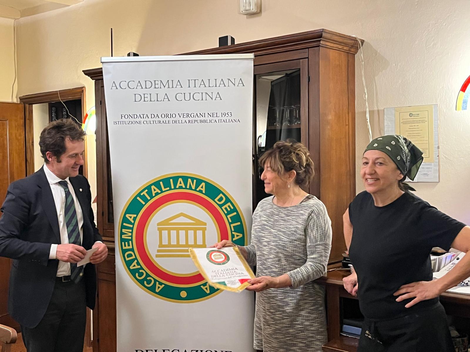 La Delegazione, durante una partecipata riunione conviviale presso "Le Poscole Al Canton Agriturismo", alla quale ha preso parte anche la Presidente di Confagricoltura della Provincia di Vicenza, dr.ssa Anna Trettenero, ha conferito i seguenti Premi dell’Accademia Italiana della Cucina: "Premio Dino Villani 2024" al Sig. Alberto Mafron, titolare dell’Offelleria Moderna Manfron di Cornedo Vicentino, per la Torta Agnese, un dolce che unisce tre prodotti De.Co. della vallata dell’Agno (la fioretta di Recoaro Terme, la maresina di Valdagno e la corniola di Cornedo Vicentino). La torta si compone di una base di biscotto di pasta bresciana alla maresina, un inserto di gelè di corniola e una mousse di fioretta, il tutto ricoperto da una glassa bianca a base di burro di cacao. Il "Premio Massimo Alberini 2024" è stato assegnato ai titolari della Pasticceria Veronese di Alte di Montecchio Maggiore (VI), nota per le sue creazioni, tra cui la bavarese, la torta meringata e la pasticceria mignon molto apprezzata dalla clientela. Durante il Carnevale, producono diverse varietà di frittelle, tra cui quelle alla crema, tradizionali e con erba maresina, che cresce spontanea nella zona. Tutti i dolci, torte, brioche e krapfen sono realizzati artigianalmente nel loro laboratorio con ingredienti di qualità, inclusa l’erba maresina raccolta nei sottoboschi locali.