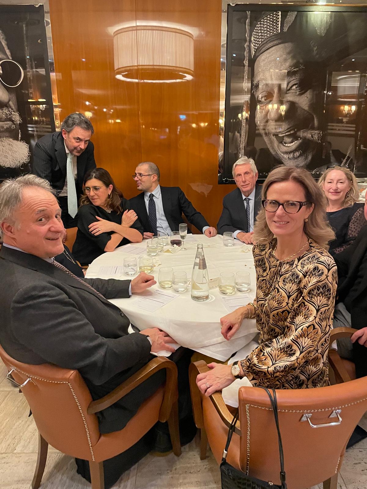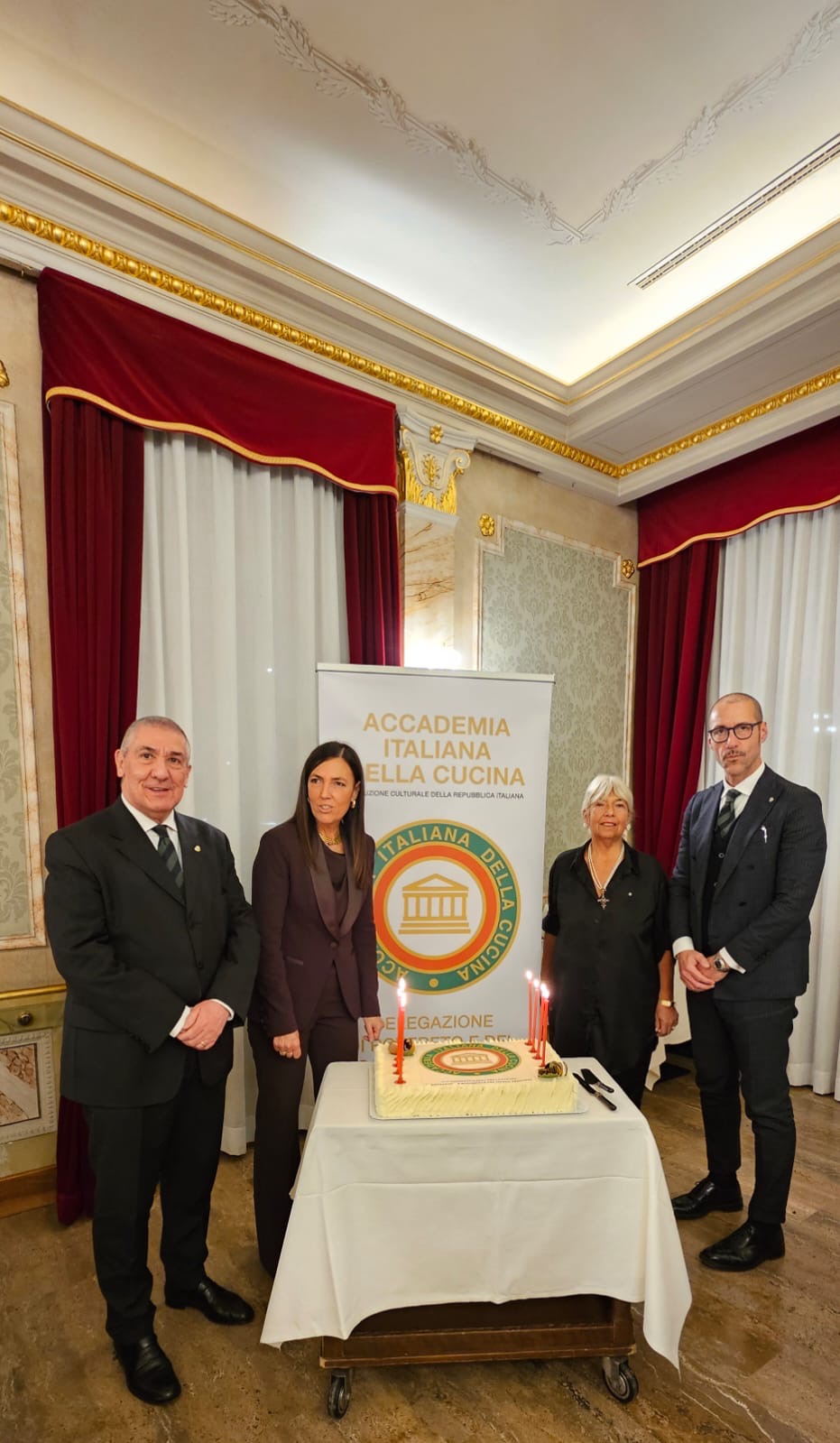 La Delegazione di Londra ha organizzato una cena nei prestigiosi locali di Cipriani a Mayfair, in occasione della consegna del Diploma di Buona Cucina al ristorante. Presenti la Console Italiana Rossella Gentile, il Direttore dell'Istituto Italiano di Cultura Francesco Bongarrà, il Direttore dell'ICE/ITA Giovanni Sacchi, il Presidente della Camera di Commercio Alessandro Belluzzo, che ha anche svolto il ruolo di Simposiarca della serata, e che, da buon veneto, ha discusso alcuni piatti del menù con lo chef Giuseppe. Ad accogliere gli ospiti, l’immancabile Bellini, accompagnato da deliziosi canapè, seguiti da una serie di piatti tipici della tradizione di Cipriani, tra cui carpaccio, risotto primavera, fegato alla veneziana, seppie con polenta grigliata. A chiudere la cena, la meravigliosa meringata presentata come una torta nuziale, che ha suscitato grande entusiasmo tra i presenti. Durante la serata, il Delegato ha dato il benvenuto a Giovanni Sacchi come Accademico Onorario. Alla fine, applausi per la brigata di cucina, il personale di sala e tutto lo staff, con il Direttore Saverio Pierro.