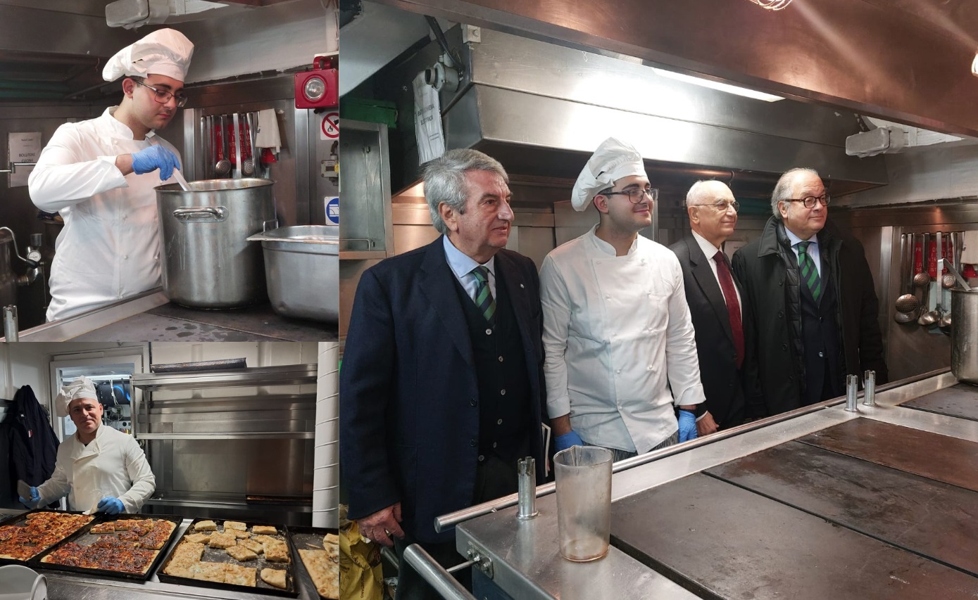La Delegazione di Messina ha curato la ristampa anastatica del Manuale del Marinaio cuoco, edito nel 1951 dal Ministero della Difesa-Marina, con insegnamenti per il marinaio cuoco e un ricettario di piatti della cucina mediterranea. La pubblicazione è stata presentata a bordo del pattugliatore d'altura Libra della Marina Militare, ormeggiato alla Base navale di Messina, dal Delegato Attilio Borda Bossana. A parlare delle procedure di approvvigionamento di una nave e dei metodi di gestione delle mense di bordo è stata la S.T.V. Diletta Di Raimondo, commissario Comdinav 4, mentre i temi della sicurezza e igiene dei prodotti alimentari e della loro conservazione, sono stati affrontati dall’S.T.V. Giulia Scavo, medico veterinario della Marina. Sono intervenuti anche l’assessore alla cultura di Messina, Enzo Caruso, il CT Sicilia orientale, Vittorio Sartorio, e il contrammiraglio Alberto Tarabotto, comandante della 4ª Divisione navale. Tutti hanno sottolineato l'importanza del cuoco di bordo, figura fondamentale in un meccanismo complesso dove ogni ruolo è essenziale, dal comandante al semplice marinaio. Durante l'evento, i numerosi Accademici hanno visitato i locali cucina, il quadrato ufficiali e la mensa dell'equipaggio, gustando la tradizionale pizza di mezzanotte, preparata dal cuoco di bordo, che sulle unità in navigazione viene distribuita agli uomini di guardia. La ristampa della pubblicazione, rara e poco conosciuta, è stata realizzata nell’anno del Calendario fotografico 2025 della Marina, dedicato all’equipaggio, dove come primo personaggio del gruppo, vi è proprio un cuoco di marina.