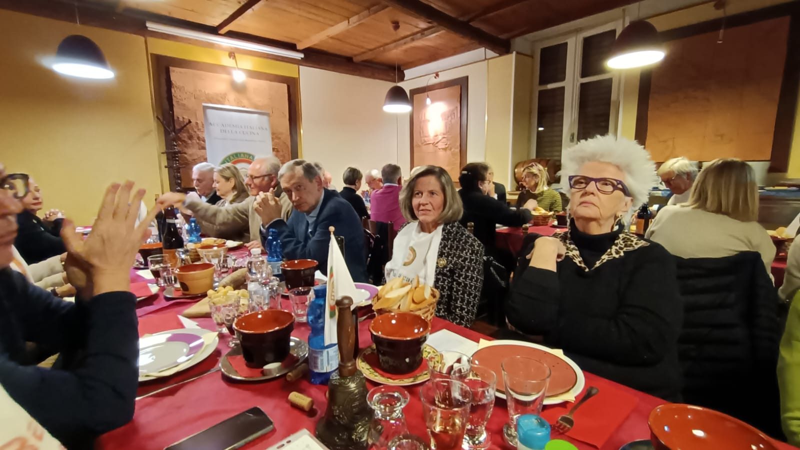 L'interconviviale tra la Delegazione di Empoli e il Lions Club Empoli si è svolta presso l’agriturismo “Montemagnoli” di Empoli (loc. Poggio Piedi), per una serata dedicata all'arrosto e agli umidi, tema dell’anno 2025. La Simposiarca Maria Scappini, Accademica e socia Lions, ha organizzato una serata all’ insegna della semplicità ma estremamente piacevole, in sintonia con lo stile del locale, pervasa da una calda atmosfera di convivialità. Oltre alla numerosa partecipazione dei soci, sono intervenuti la Delegata della Versilia Storica Anna Ricci e la Presidentessa della Fidapa Lucia Ceccanti. Dopo i saluti iniziali del Delegato dell’Accademia di Empoli Massimo Vincenzini e del Presidente del Lions Club Empoli Francesco Salvadori, ha avuto inizio il ricco menu con paccheri all’anatra e un girarrosto scenografico, seguito dal cinghiale in umido con erbetta di campo, piatti tipici del locale. Durante la serata, l'Accademica Sandra Ristori e la Simposiarca Maria Scappini hanno offerto un interessante excursus storico sul tema dell’anno. La serata si è conclusa con bomboloncini e sfoglie alla crema, preparati con prodotti locali e legati alla tradizione, molto apprezzati dai presenti. I piatti, semplici ma di qualità, sono stati realizzati con cura dalla famiglia Gherardelli, espressione di cucina casalinga e tradizione locale. L’Agriturismo Montemagnoli, aperto nel 2007 dalla signora Sandra, seguita poi in questo progetto da tutta la famiglia, porta avanti la vecchia tradizione culinaria con passione, cura e semplicità. Un'ottima serata per rafforzare i legami tra le due associazioni all'insegna della buona cucina.
