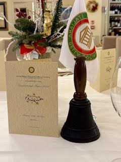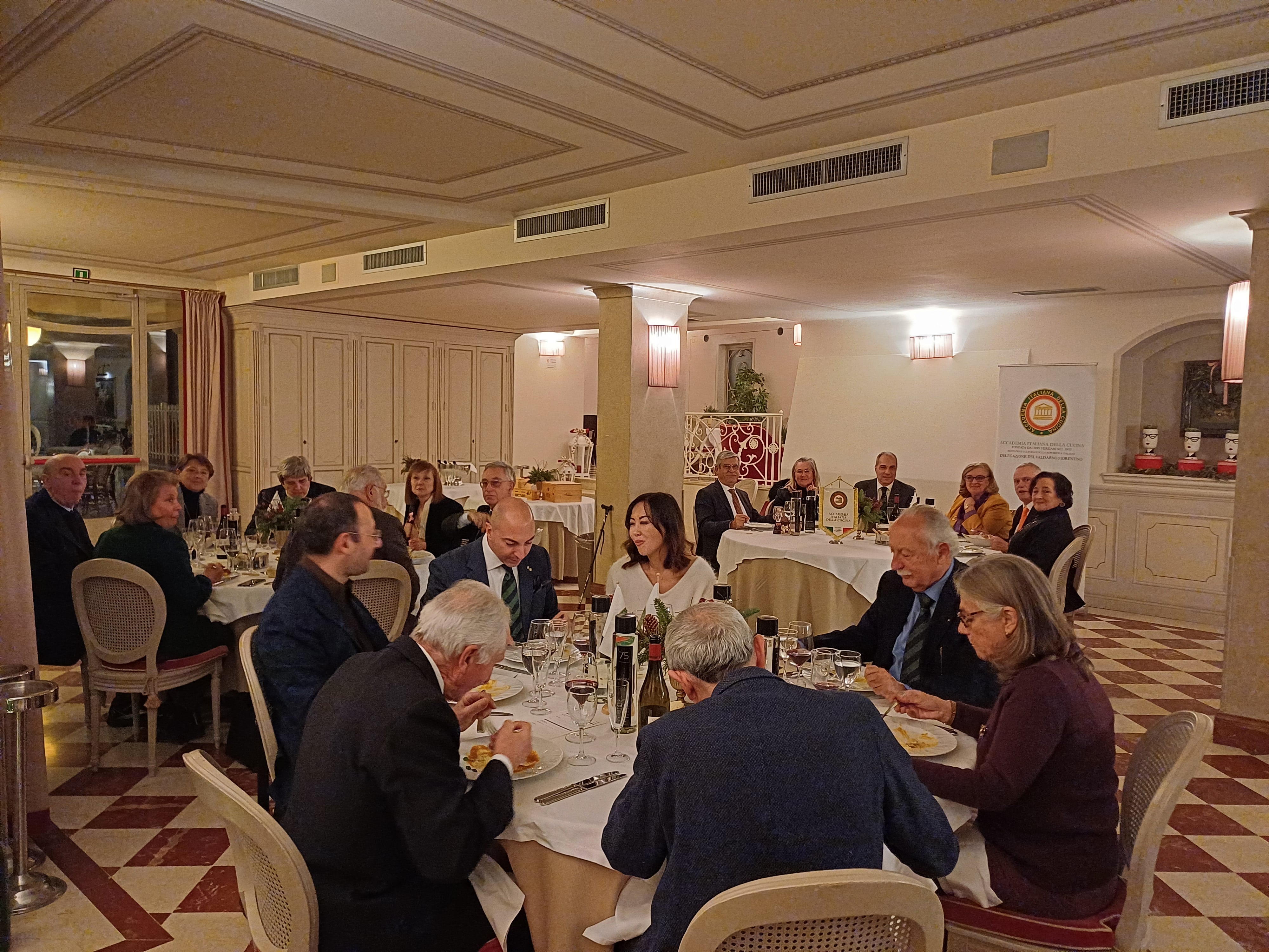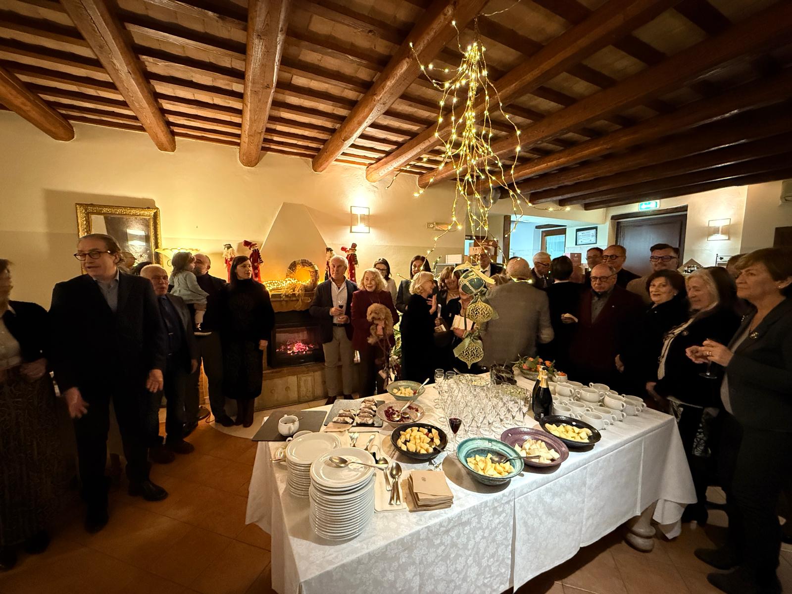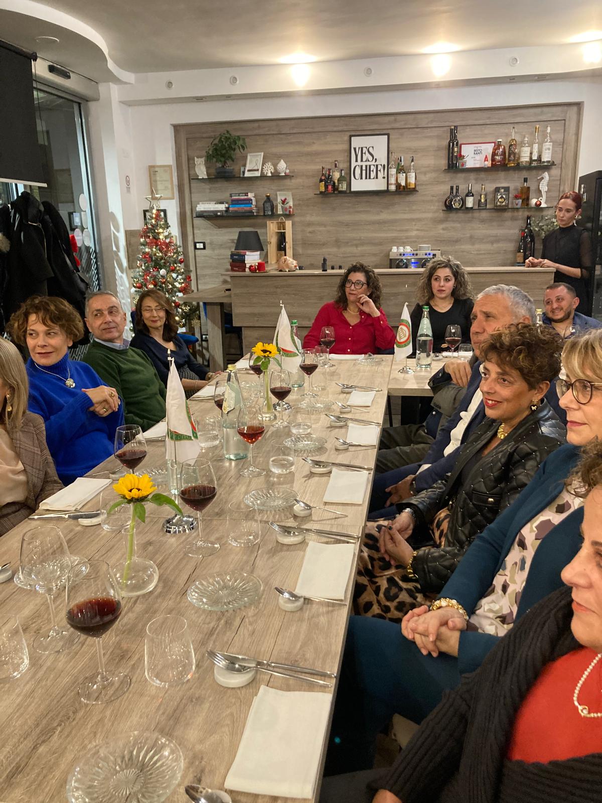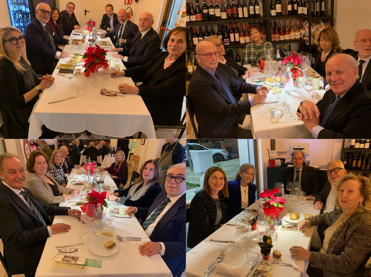 Riunione conviviale degli auguri natalizi, organizzata con magistrale esperienza dal vice Delegato Cristofaro La Corte e dalla Tesoriera Maura Raccichini presso il ristorante “Non ti scordar di me”. In tavola, i piatti della tradizione locale in occasione della festività, la cui esecuzione ha ottenuto unanimi consensi dai partecipanti. Ottima l'atmosfera amicale e conviviale, arricchita dal clima natalizio enfatizzato dai canti e dalle note al pianoforte. Il buffet finale di dolci natalizi, tra cui cannoli siciliani, tagliata di frutta mista e frutti rossi, ha deliziato i presenti. Di grande gusto il "vuota tasche" in ceramica decorata, scelto come ricordo dell'evento. La foto finale di gruppo, scattata di fronte al camino acceso e all'albero di Natale, ha suggellato una bella giornata trascorsa in grande armonia.