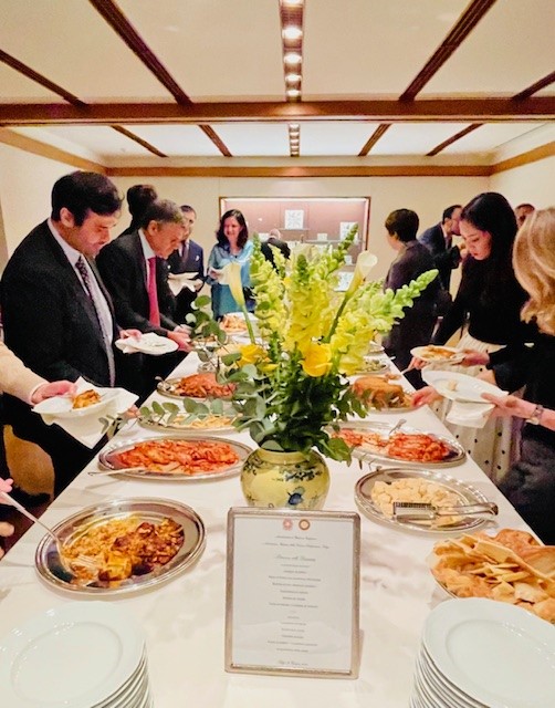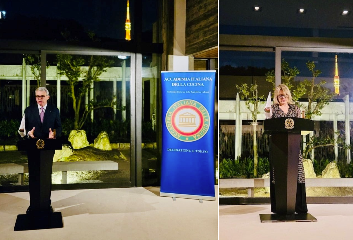 La Delegazione di Tokyo è stata ospite di S.E. l’Ambasciatore Gianluigi Benedetti e di sua moglie Sabina D'Antonio, nella splendida cornice dell’Ambasciata d’Italia, per la consegna dei premi annuali 2024. Nel suo discorso di apertura l’Ambasciatore ha sottolineato come il 2024 abbia rappresentato una svolta per la l’Accademia a Tokyo con il raggiungimento di un traguardo importante: la trasformazione in Delegazione. Un traguardo che non sarebbe stato possibile senza il supporto della Accademia Onoraria Sabina D’Antonio che ha fattivamente supportato l’organizzazione negli ultimi quattro anni. La Delegazione ha ringraziato i protagonisti di quest'anno e coloro che, negli anni passati, hanno contribuito a far conoscere e apprezzare la tradizione culinaria italiana. Tradizione culinaria celebrata con un prelibato buffet sul tema del "pranzo della domenica", una delle tradizioni più amate dagli italiani, attorno al quale si consolida una memoria collettiva del gusto, che ci accompagna da generazioni. Il Premio Giovanni Nuvoletti è stato assegnato a Kishi Mayako, dell'Associazione delle Scuole di Cucina Italiana in Giappone, che promuove seminari e eventi sulla cucina italiana. Il Premio Massimo Alberini è andato alla panetteria artigianale Pane&Olio, famosa per i suoi lievitati, tra cui il panettone tradizionale. Il Diploma di Buona Cucina è stato conferito alla Trattoria "Dai Paesani" di Davide Fabiano, premiata per l'eccellenza culinaria e l'atmosfera autentica e accogliente. Una serata molto riuscita che ha lasciato la voglia di fare di più.