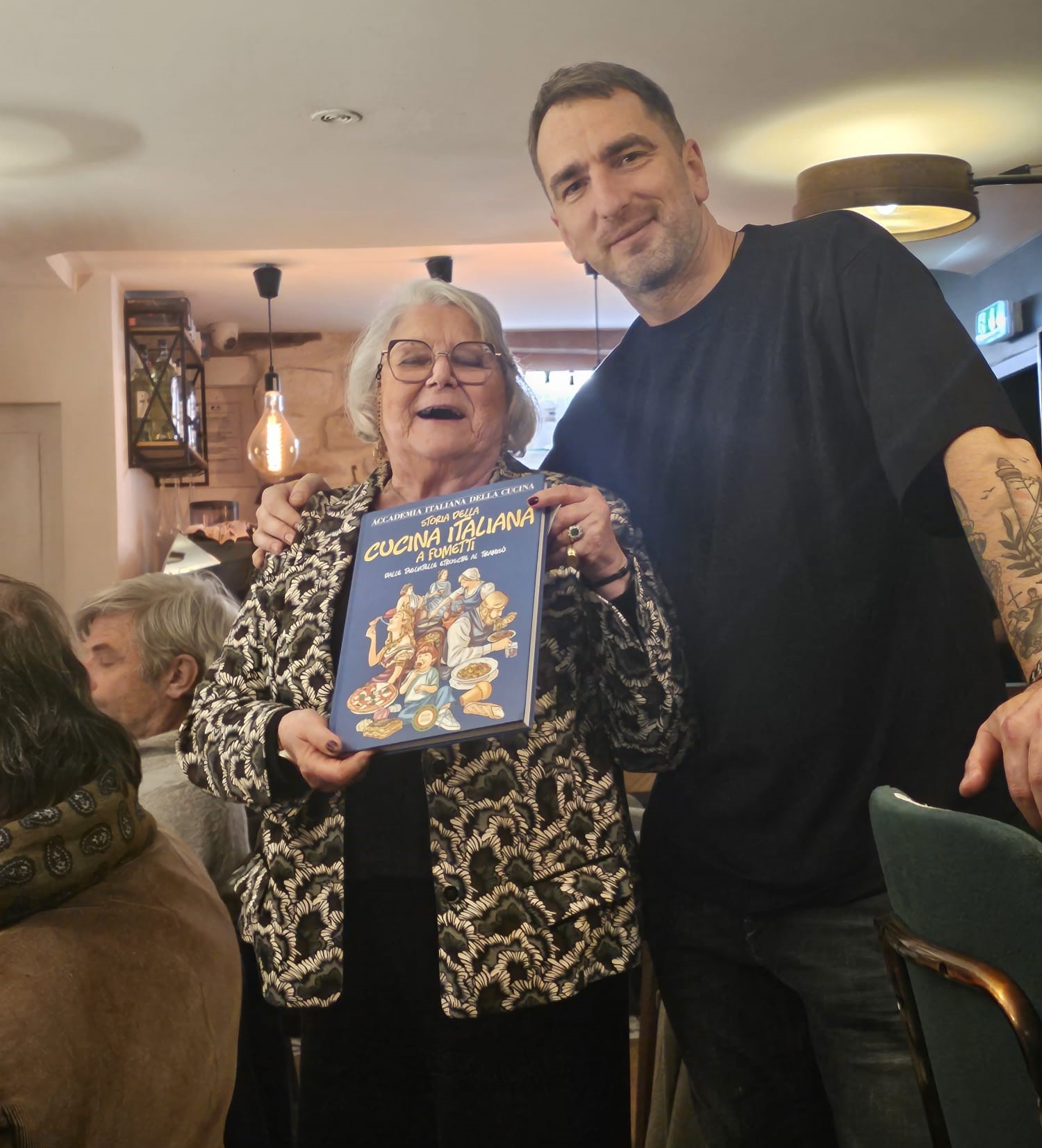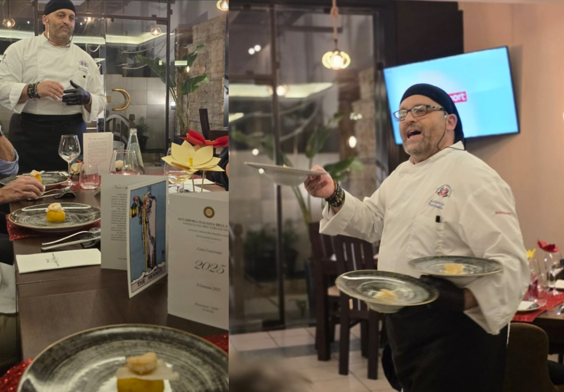 Per qualche ora, la Delegazione di Parigi Montparnasse si è idealmente trasferita in uno dei quartieri romani più famosi, vivendo una serata speciale in compagnia allegra. Davide, proprietario dell’Osteria del Sesto e romano doc, ha aperto le porte della sua “Osteria Romana” nel Sesto quartiere di Parigi con spirito goliardico, essendo un grande tifoso della Roma. L’esperienza è stata eccezionale: l’accoglienza, il servizio, la qualità e la generosità delle portate, insieme ai vini scelti, hanno raggiunto il massimo punteggio possibile (10), con la sensazione che, se fosse stato possibile, il punteggio sarebbe stato ancora più alto. Durante la serata festosa, Anne Marie AMADEUF BLIAK è stata insignita ufficialmente del titolo di “Accademica”. La Delegata ha ringraziato Davide, proprietario e chef, per aver trasmesso con passione la cucina tradizionale romana a Sohel Rana, che ha preso il suo posto in cucina, a Forkan Uddin, aiuto cuoco, a Samuele Modica, responsabile di Sala, e a Diego De Montis, cameriere. In segno di gratitudine per la serata, sono stati offerti il guidoncino dell’Accademia, il libro “Storia della Cucina Italiana a fumetti” e la vetrofania 2025.