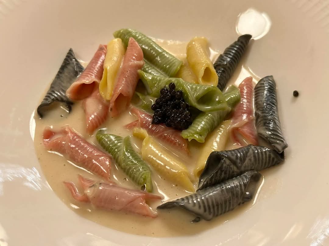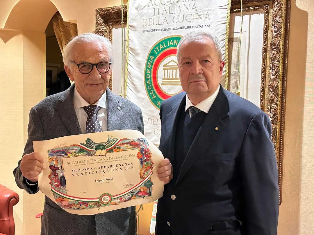 Lo scambio degli auguri negli sfavillanti ambienti del San Domenico ricchi di atmosfera natalizia ha suggellato un’annata densa di iniziative culturali e di visite ai locali della ristorazione. La proposta del menù messo in tavola da Massimiliano Mascia ha accompagnato in un bel viaggio gli Accademici arricchiti da un nuovo piatto, accoppiando ai garganelli di Imola il caviale ferrarese di Cristina Maresi. Un inno al territorio e alla condivisione delle diversità, propria del patrimonio della cucina italiana. In apertura di conviviale è avvenuta la cerimonia di consegna del diploma di appartenenza venticinquennale a Franco Resta e, a seguire, con un lungo applauso è stato accolto nella Delegazione il nuovo Accademico Andrea Uzzo.