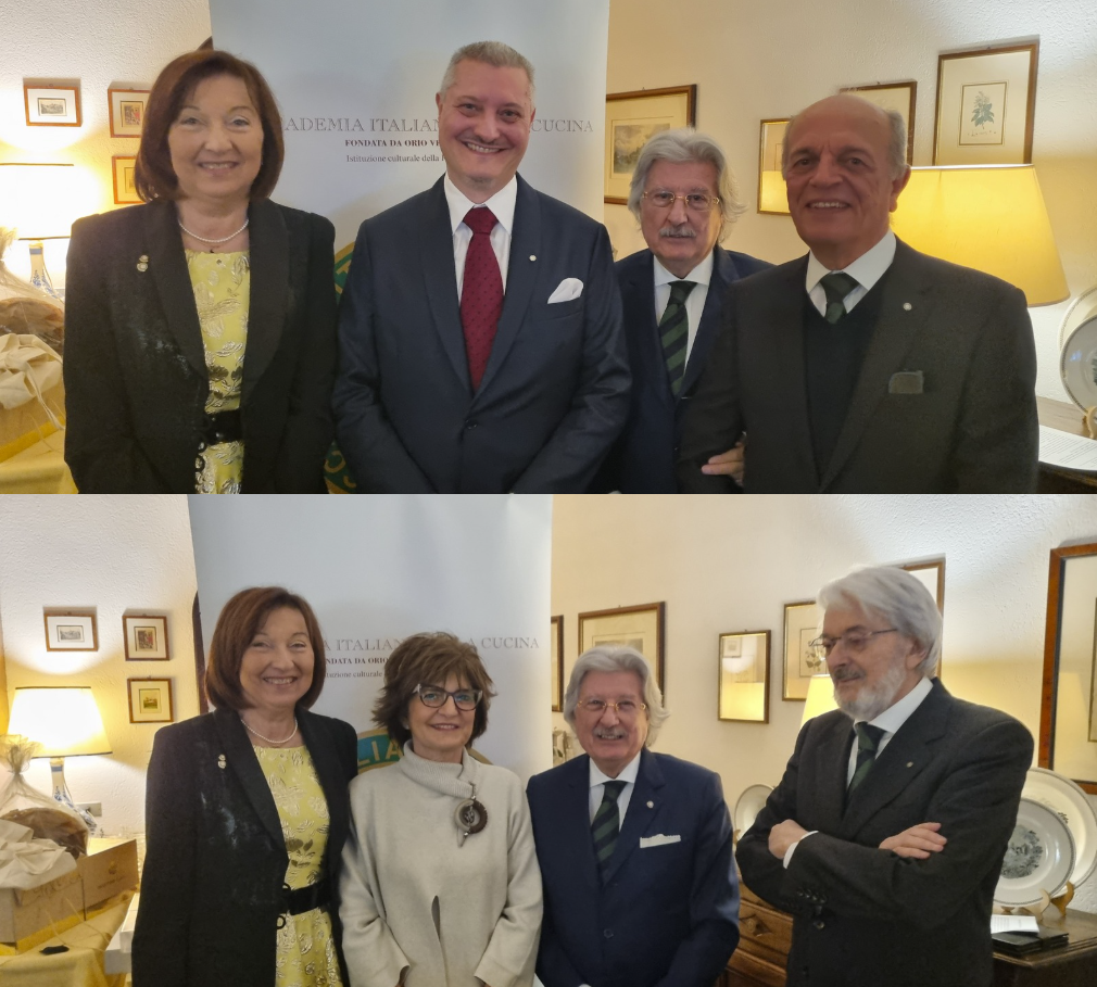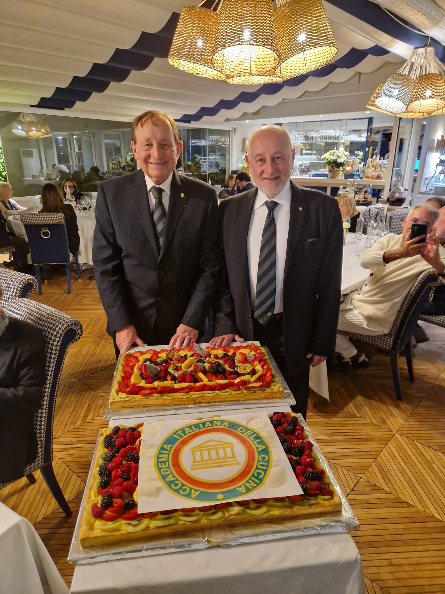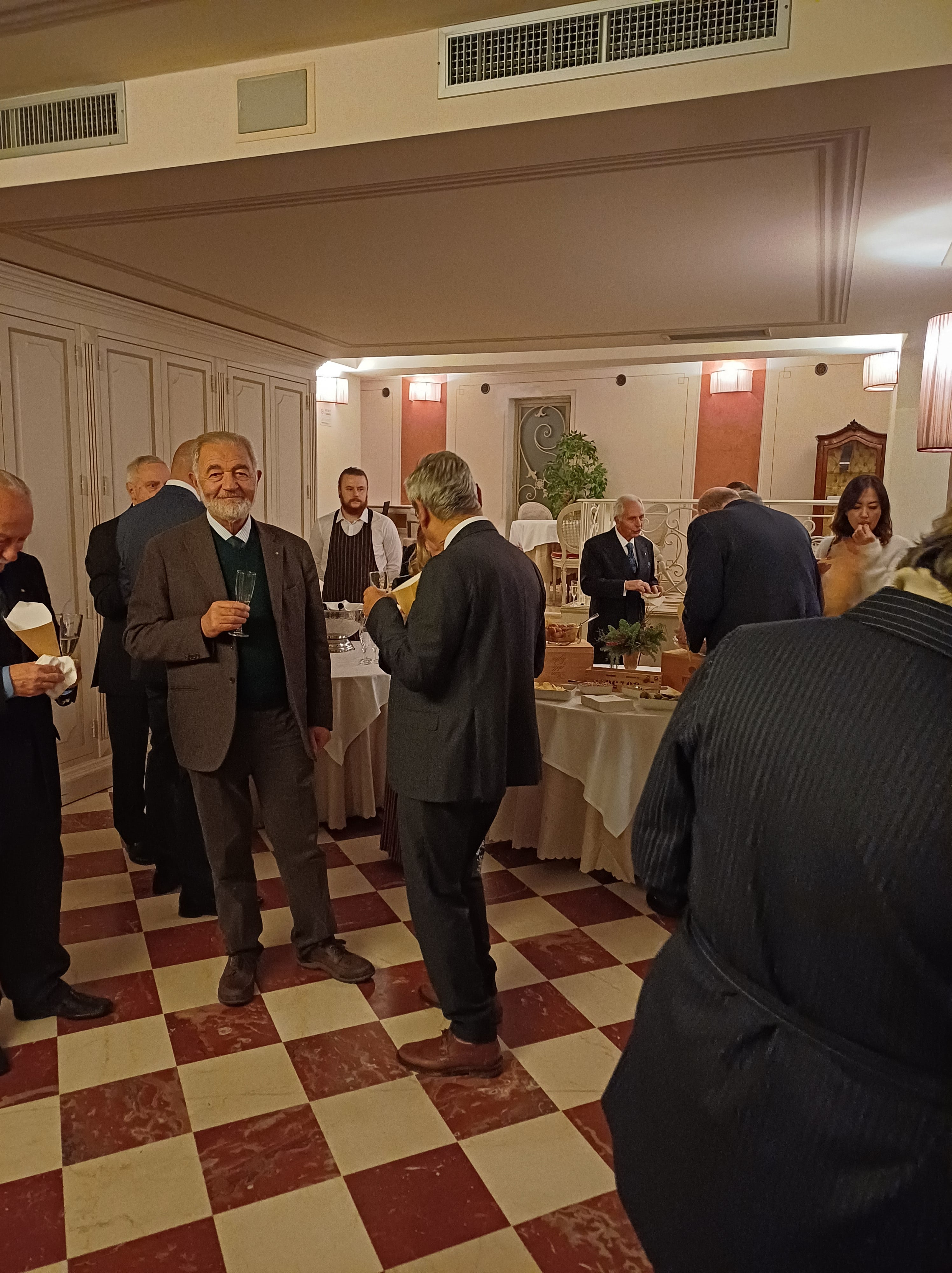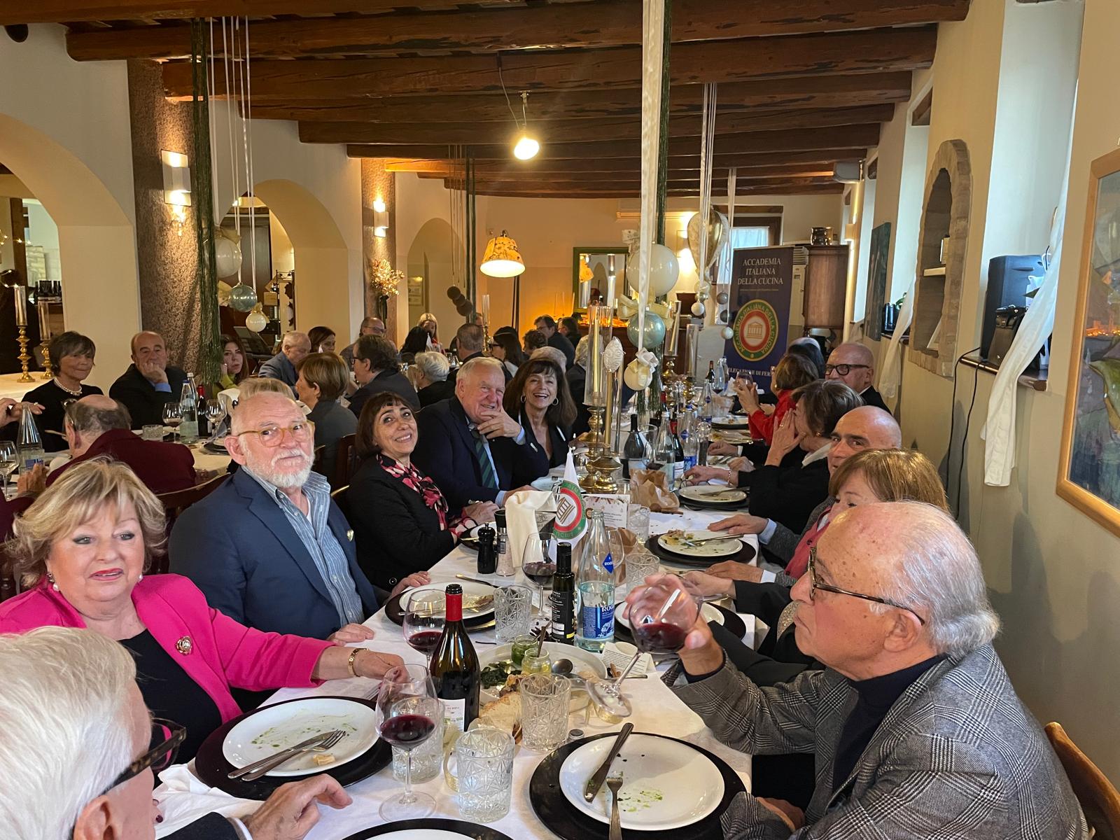 Il tradizionale pranzo di Natale si è tenuto, come negli ultimi tre anni, al ristorante “Al Sorriso” di Soriso, un simbolo della cucina italiana che negli anni '90 e 2000 2000 era in vetta a tutte le classifiche e guide gastronomiche d'Italia. Il locale, premiato in quegli anni con il Diploma di Cucina Eccellente, continua a offrire qualità, stile e accoglienza senza pari. Il Delegato ha richiesto un menù che combinasse classici del ristorante con piatti internazionali: gazpacho tiepido con capesante e gamberi, patata gratinata al parmigiano con uovo e tartufo, risotto con carciofi, topinambur e crostace e polvere di pino mugo, e un tournedos alla Rossini con salsa Périgueux, realizzata con una bottiglia di Madeira Raro Velho do Campanario del 1840, ricevuta 40 anni fa dal Delegato Costantino Tromellini. Questo gesto ha suscitato grande emozione tra i presenti. Prima del pranzo, sono stati accolti tre nuovi Accademici accolti dal Delegato e dal membro del CdP Elisabetta Cocito, che ha anche raccontato, con la consueta competenza, la storia del gazpacho e del tournedos. Gli applausi finali sono andati a Luisa e Angelo Valazza, da sempre alla guida di questo locale che brilla ancora fulgido nel cielo della ristorazione italiana.