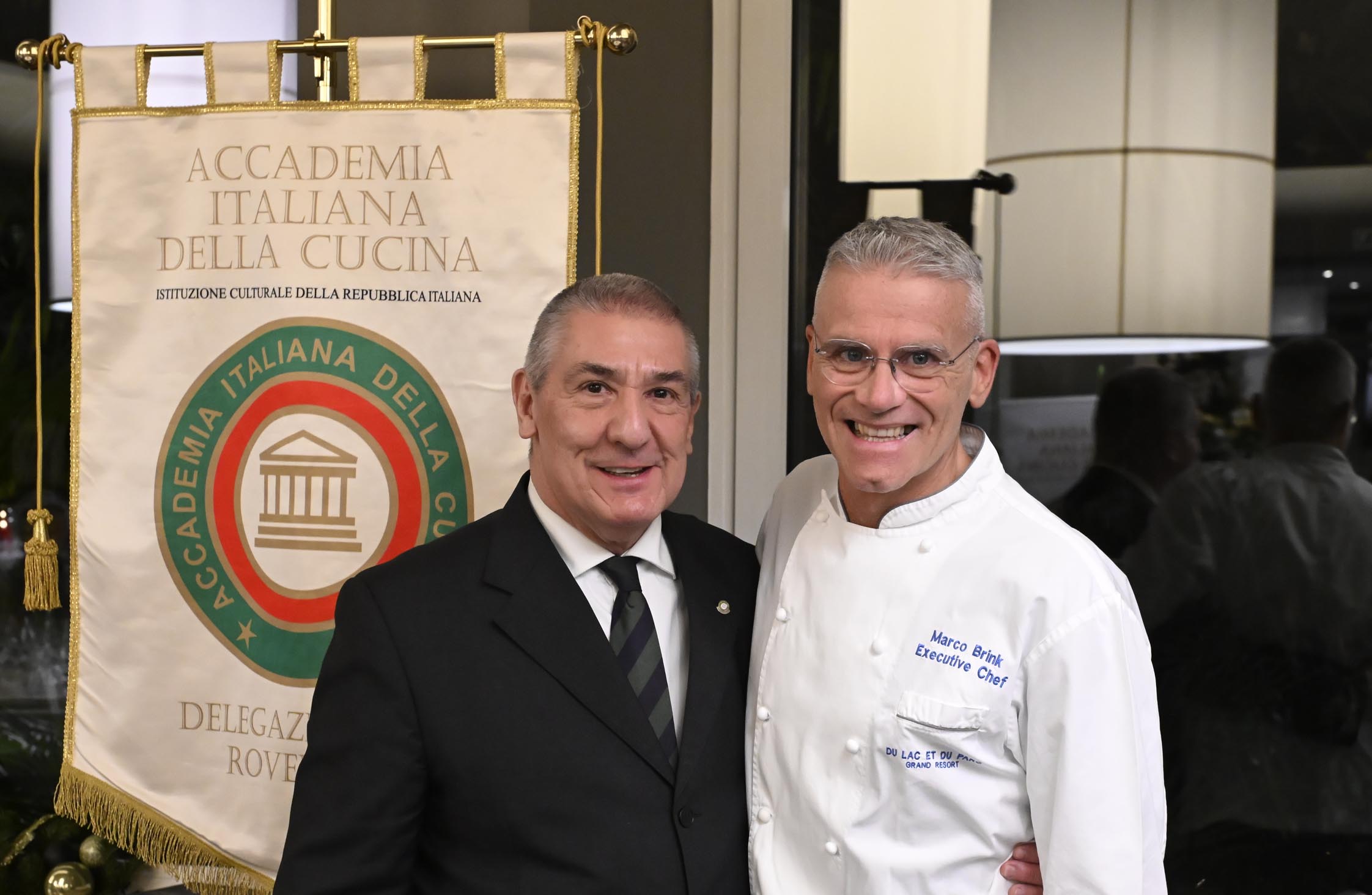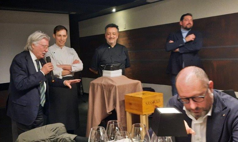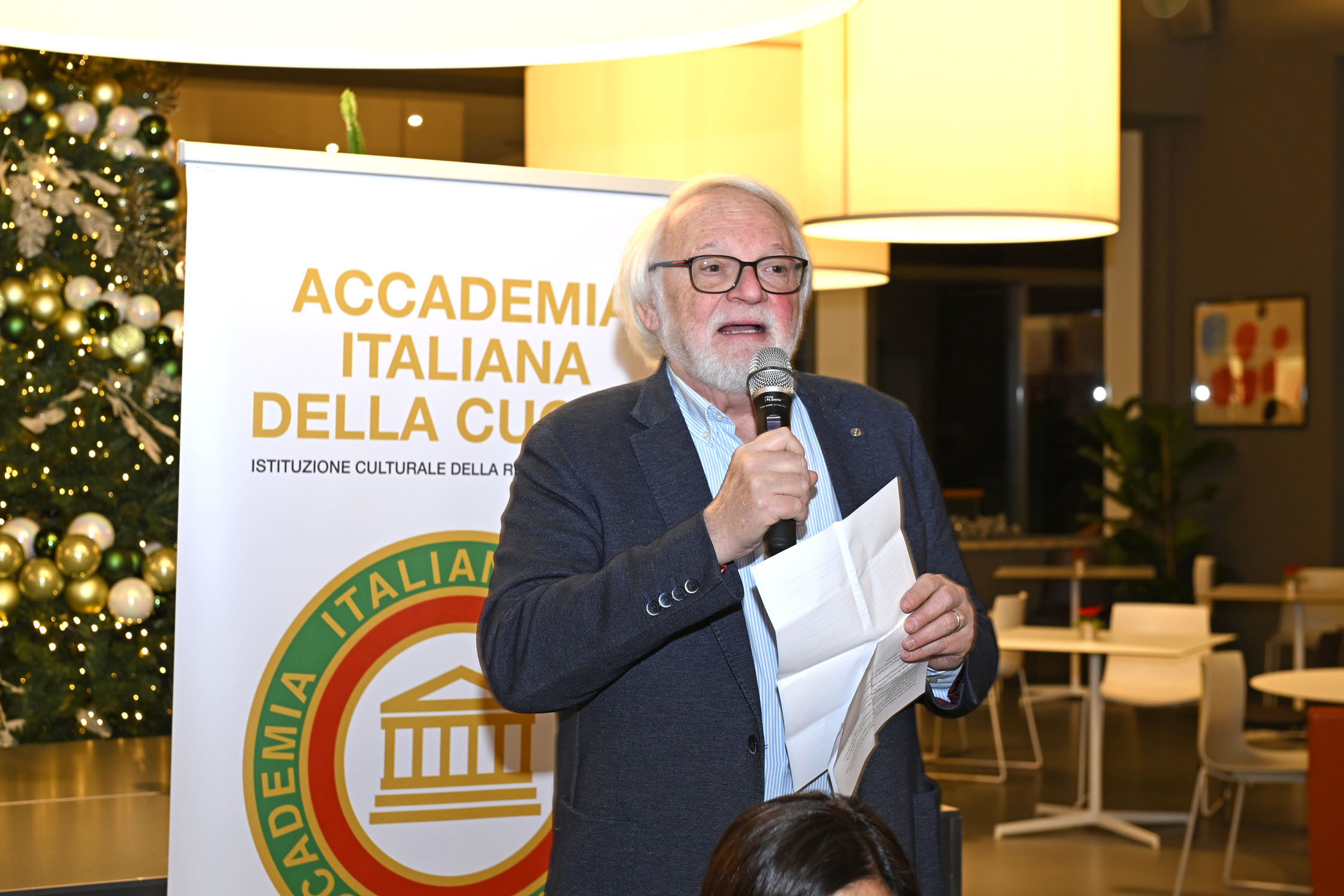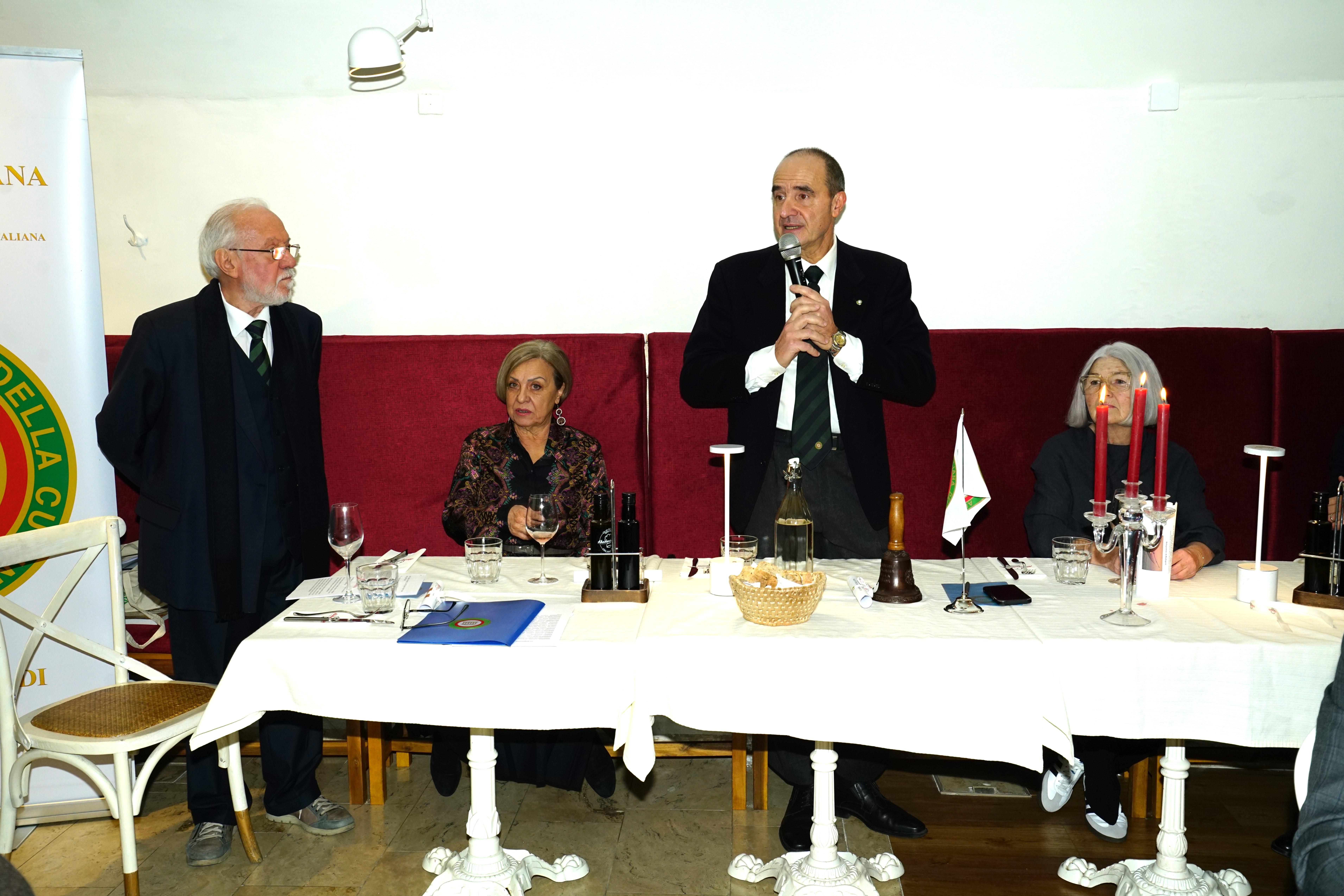 Il tradizionale pranzo di Natale si è tenuto, come negli ultimi tre anni, al ristorante “Al Sorriso” di Soriso, un simbolo della cucina italiana che negli anni '90 e 2000 2000 era in vetta a tutte le classifiche e guide gastronomiche d'Italia. Il locale, premiato in quegli anni con il Diploma di Cucina Eccellente, continua a offrire qualità, stile e accoglienza senza pari. Il Delegato ha richiesto un menù che combinasse classici del ristorante con piatti internazionali: gazpacho tiepido con capesante e gamberi, patata gratinata al parmigiano con uovo e tartufo, risotto con carciofi, topinambur e crostace e polvere di pino mugo, e un tournedos alla Rossini con salsa Périgueux, realizzata con una bottiglia di Madeira Raro Velho do Campanario del 1840, ricevuta 40 anni fa dal Delegato Costantino Tromellini. Questo gesto ha suscitato grande emozione tra i presenti. Prima del pranzo, sono stati accolti tre nuovi Accademici accolti dal Delegato e dal membro del CdP Elisabetta Cocito, che ha anche raccontato, con la consueta competenza, la storia del gazpacho e del tournedos. Gli applausi finali sono andati a Luisa e Angelo Valazza, da sempre alla guida di questo locale che brilla ancora fulgido nel cielo della ristorazione italiana.