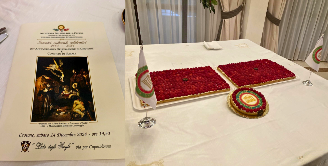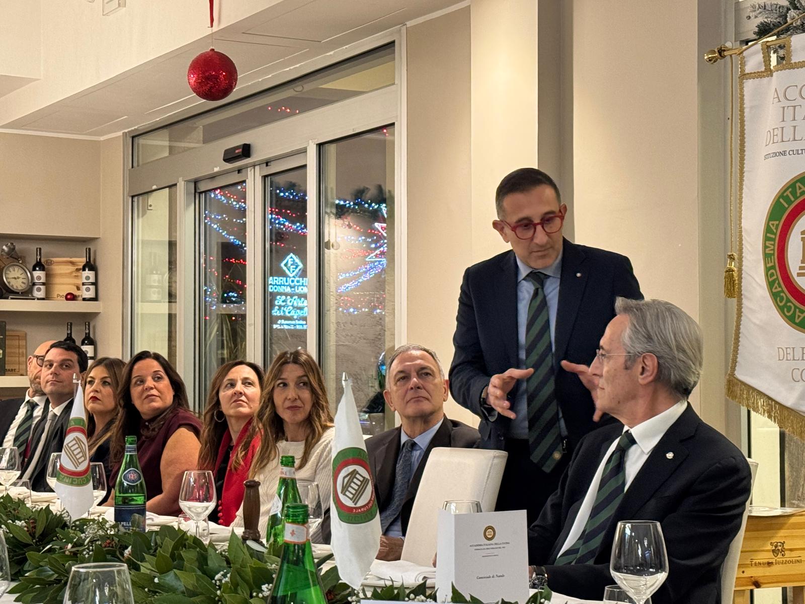 La Delegazione di Crotone ha festeggiato i suoi 20 anni di attività al Lido degli Scogli, luogo simbolo della sua fondazione nel 2004. L'evento ha visto la partecipazione dei Delegati delle province calabresi e di autorità locali, tra cui il sindaco Vincenzo Voce e l'arcivescovo di Lamezia Terme S.E. Mons. Serafino Parisi. Il Delegato Sergio D’Ippolito ha salutato i presenti, ricordando il contributo di Accademici storici come Adriana Liguori Proto, Delegata fondatrice della Delegazione, e ha reso omaggio agli Accademici scomparsi. D’Ippolito ha sottolineato il ruolo della Delegazione nel promuovere i valori culturali e gastronomici della comunità, sostenendo le realtà produttive locali. Alcuni Accademici, tra cui Vincenzo Cizza, Cettina Princi Lupini e Rosanna Muscolo Nicotera (Delegata di Catanzaro), hanno condiviso le loro esperienze. Il giornalista Gianfranco Manfredi ha parlato delle peculiarità culturali di Crotone, ricordando la figura di Adriana Liguori Proto e le principali iniziative della Delegazione. Durante la serata, è stato conferito il premio Massimo Alberini a Luciano Cortese, titolare del Bar Moka, per il suo impegno nella gelateria artigianale. Il premio è stato consegnato dal sindaco Voce e dalla vice Delegata Ginetta Stricagnolo Petrillo. La serata si è conclusa con la benedizione dell’arcivescovo S.E. Mons. Parisi e il tradizionale Convivio di Natale arricchito dalle portate dello chef Antonio Martino, lo stesso della serata istitutiva della Delegazione vent’anni fa. Un brindisi finale e una grande torta hanno chiuso i festeggiamenti.