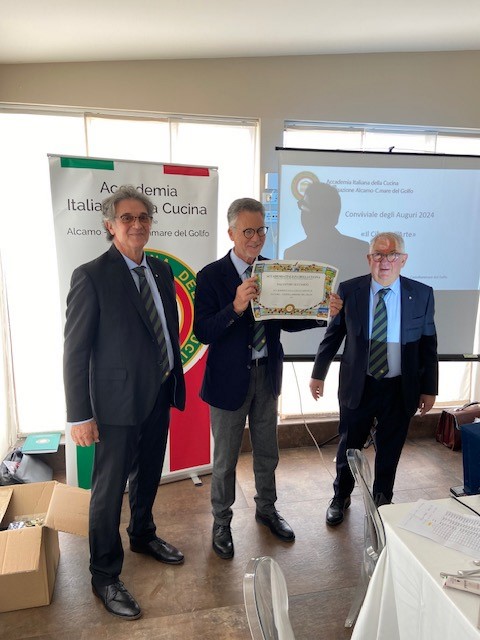 La conviviale degli auguri di Natale si è svolta presso il ristorante La Nuova Campana, da cui si può ammirare il suggestivo panorama del golfo di Castellammare, che si estende da Capo San Vito a Capo Rama. Dopo i convenevoli saluti, il delegato Liborio Cruciata ha annunciato l’ingresso del nuovo Accademico, Salvatore Gucciardo. In seguito, è stata presentata una magistrale relazione sul tema "Il cibo nell’arte" da parte della prof.ssa Floriana Ruta, la quale ha esplorato le raffigurazioni pittoriche, partendo dagli antichi greci fino ai pittori moderni. Il menu proposto dal cuoco Leonardo Bono, diplomato presso la scuola di cucina "Alma" di Parma, diretta da Gualtiero Marchesi, ha trovato ampio consenso tra i commensali. Particolarmente apprezzato il pizzotto sfincionato al baccalà, ben equilibrato il condimento della calamarata e fresco il pesce ricciola. Ottimo anche il vino. Il servizio si è contraddistinto per la sua attenzione e professionalità.