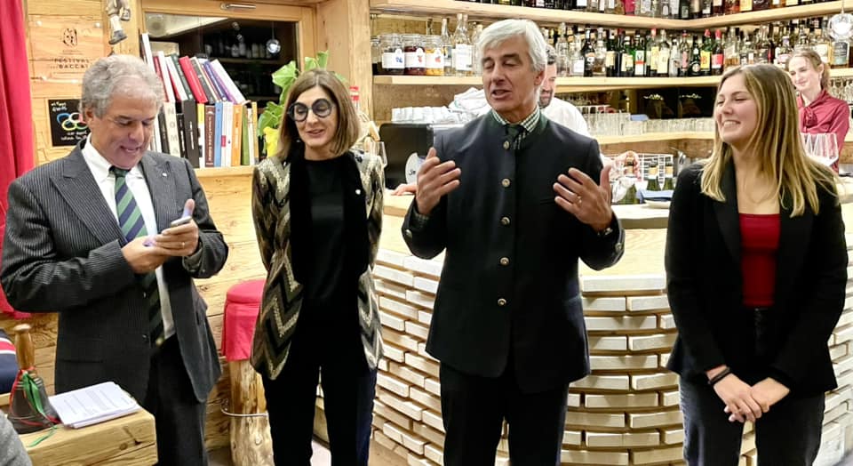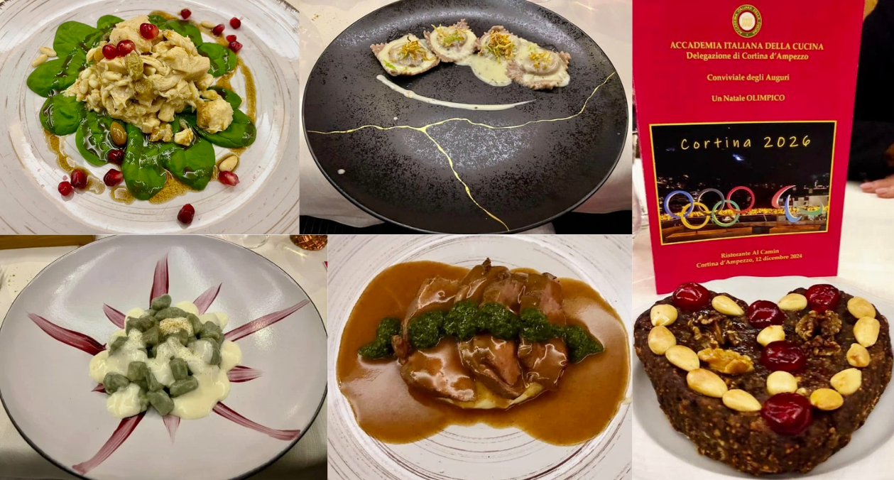 La riunione conviviale degli Auguri della Delegazione di Cortina d’Ampezzo è stata quest’anno dedicata allo sport e si è tenuta presso il ristorante Al Camin, il cui titolare, Fabio Pompanin, è uno dei cuochi olimpici ampezzani. Insieme ai Simposiarchi Fabio Alverà e Nico de Villa Bais, ha proposto un menu che ha celebrato le prossime festività, portando in tavola i piatti ideati e serviti a Casa Italia durante le Olimpiadi. Ospiti della serata sono stati la campionessa di curling Marta Lo Deserto e il Vice Presidente dell’Associazione Curling Cortina, Massimo Antonelli. Nel corso della serata è stato ufficializzato l’ingresso nella Delegazione del nuovo Accademico Alfonso Sidro.