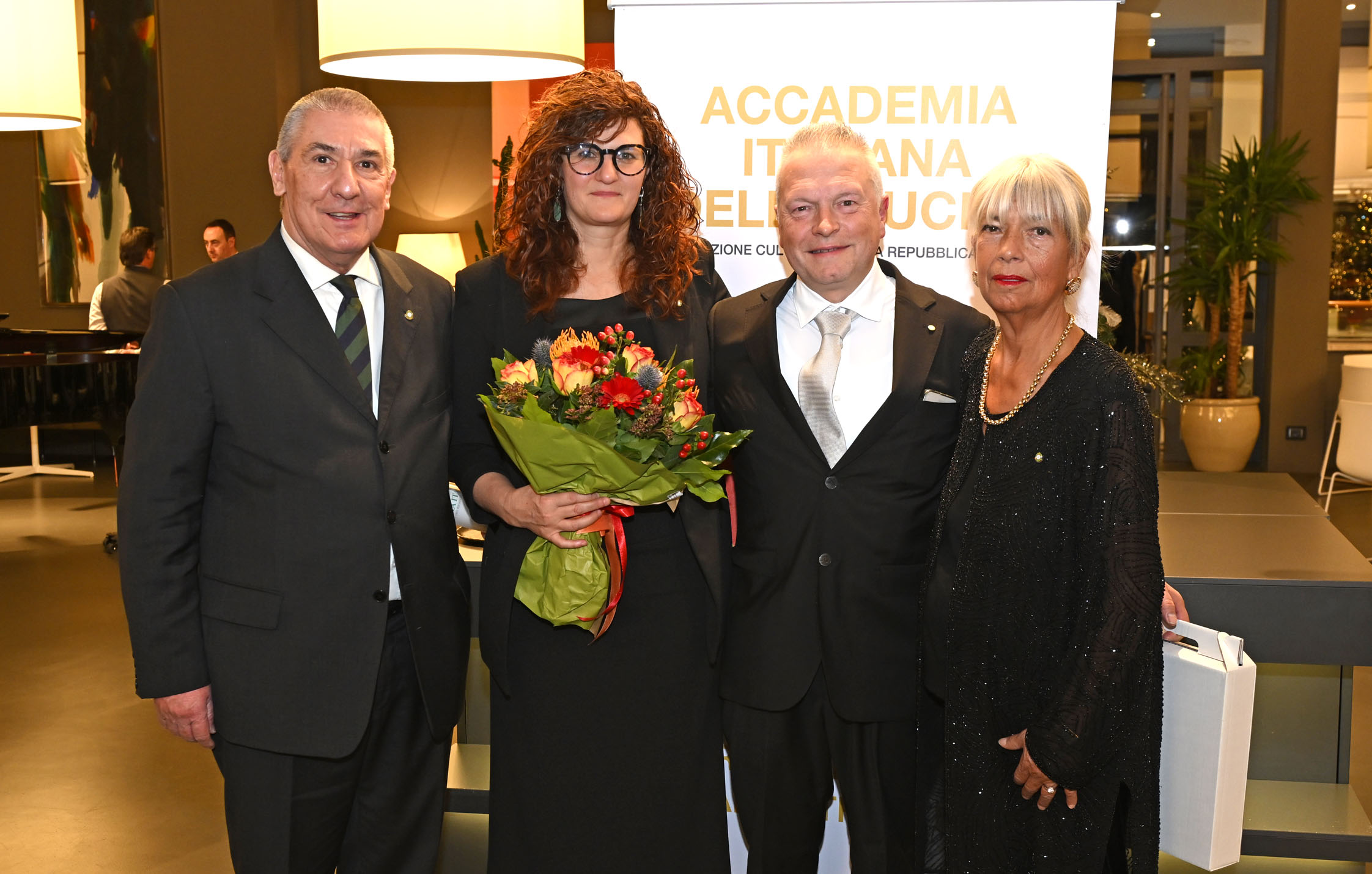 Il nome del ristorante, “Qmé – Esperienza Sensoriale”, già racchiude in sé una promessa, quella di un viaggio in un mondo gastronomico a cui partecipano egualmente i nostri sensi attraverso la percezione di colori, sapori, odori, suoni e sensazioni tattili. In questo ristorante e con queste premesse si è svolta la conviviale di gennaio che ha inaugurato le attività dell’anno accademico 2025. Ad accogliere gli Accademici, un fresco profumo di agrumi, musica soft rilassante e una flûte di bollicine, preludio a una serata dove ogni dettaglio ha fatto la differenza, dalla calda atmosfera che Antonio Maglia e Vanessa Selvaggio, comproprietari del locale, hanno saputo creare, all’arte culinaria di chef Tony Torcasio che ha guidato con grande competenza i convitati alla degustazione di pietanze che hanno visto come protagoniste tradizione, innovazione e un pizzico di “fusion”. Qualità che si sono palesate nelle varie e apprezzatissime portate: julienne di seppia a bassa temperatura con gazpacho di verdure, arancina di gambero con chutney d’arancia, tempura di baccalà croccante, involtino di pasta fillo con patate silane e mazzancolle, e infine il Rock Parfait, un dolce che combina una bavarese e un semifreddo, una delizia per il palato con cui terminare una serata fatta di nuove esperienze gustative. La conviviale si è conclusa con la consegna della meritata vetrofania ai proprietari, un caloroso applauso allo chef e il tradizionale suono della campana.