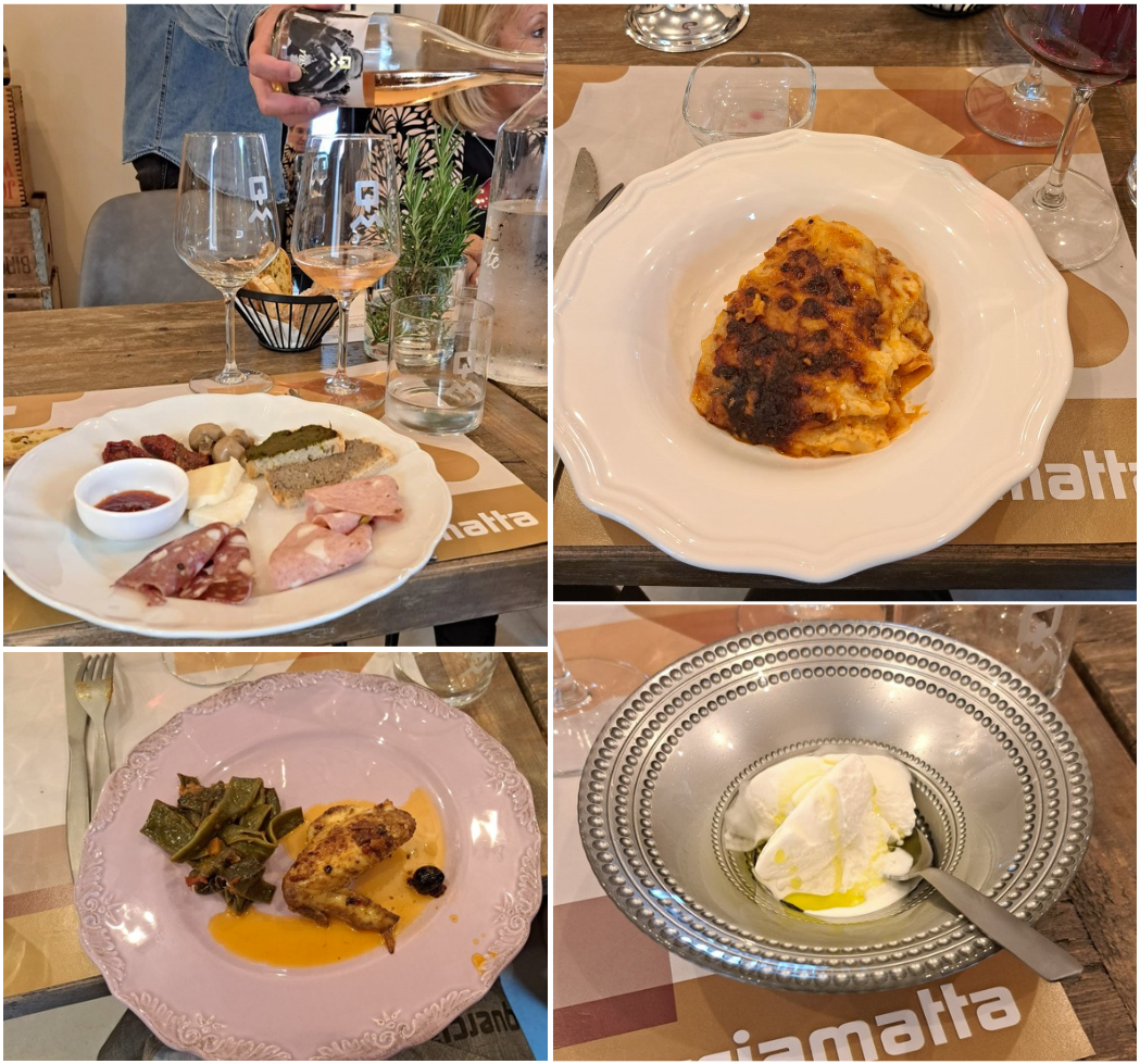 Il pranzo al ristorante "Mamma Lena" è stato un vero successo con grande partecipazione da parte di tutti i commensali, non solo per la qualità del cibo, ma anche per l’ospitalità della chef Maddalena Borrello e del figlio Giovanni che hanno raccontato la loro storia e reso tutti gli Accademici partecipi del percorso da loro seguito. La chef, mamma Lena (Maddalena), ha raccontato anche come negli anni Ottanta fosse stata la cuoca di Giulio Andreotti ed altre personalità di rilievo a Roma, riportando tutti indietro nel tempo. Il locale è accogliente nella sua semplicità, con le tovaglie a quadri e i grissini torinesi sulla tavola, tutti particolari che hanno permesso agli Accademici di sentirsi a casa, pur essendo a migliaia di chilometri di distanza. Le portate, abbondanti, hanno riportato alla memoria la vera cucina casalinga, verace e tradizionale. Un particolare e unanime riconoscimento è andato alle pappardelle spezzate (fatte in casa) con le cozze, così come alla scarola con i fagioli. Meno soddisfazione per i dolci. Un pranzo riuscitissimo, grazie al buon cibo e all’accoglienza fantastica.