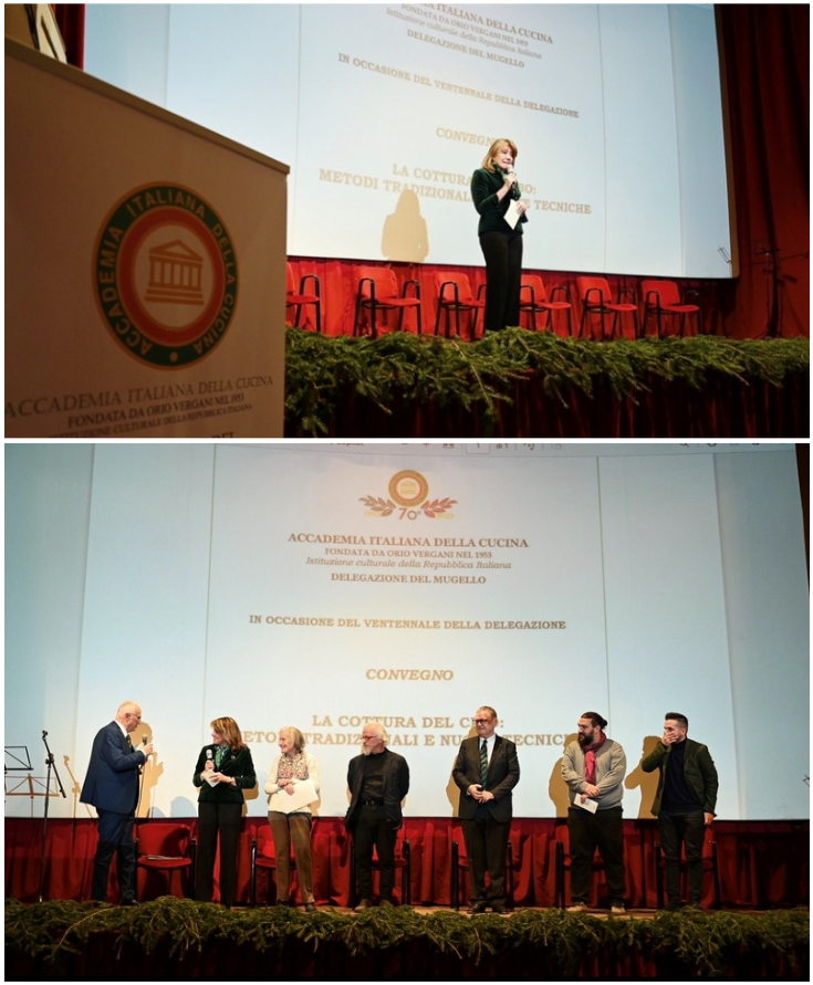 Per festeggiare il ventesimo anniversario dalla sua fondazione, la Delegazione ha organizzato il convegno “La cottura del cibo: metodi tradizionali e nuove tecniche”, patrocinato dal Comune di Borgo San Lorenzo. Dopo i saluti della Delegata Monica Sforzini e dell’Assessore Patrizio Baggiani, il Segretario Generale Roberto Ariani, portando i saluti del Presidente Petroni, ha aperto i lavori, coordinando gli interventi degli illustri relatori. Giuseppina Carla Romby dell’Università di Firenze ha percorso l’evoluzione tra XV e XVIII sec. dei luoghi del cibo; Leonardo Romanelli, critico enogastronomico, ha evidenziato, relativamente al tema, aspetti come l’etica, l’ambiente, la salute e il piacere del palato. Le tecniche di cottura più avanzate sono state illustrate da Roberto Zottar, membro del Centro Studi Franco Marenghi, mettendo in luce varie peculiarità quali la consistenza dei cibi, l’intensità dei sapori, il controllo delle temperature, gli aspetti salutistici. Hanno poi portato la loro esperienza nella ristorazione Cristian Borchi sui metodi di cottura più tradizionali e Nicola Tranchina proiettato verso metodi e tecniche più innovative. Al convegno è seguito il convivio al Golf Poggio dei Medici di Scarperia e San Piero (FI), durante la quale è stato riproposto il menu del 2003 preparato dal cuoco Cristian Borchi. Una serata ricca di emozioni nella quale è stato ricordato il primo Delegato Adriano Borgioli e ripercorse le tappe più importanti dei primi vent’anni della Delegazione dai due fondatori Renzo Bartoloni e Gigi Mercatali.