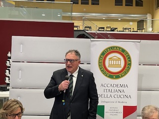 Tradizionale Cena degli Auguri e dei Riconoscimenti della Delegazione presso il Volt Cafè, esempio di riconversione industriale in luogo di studio e di eventi. Erano presenti il Coordinatore Territoriale Emila Pier Paolo Veroni e la Delegata delle Terre Modenesi Rosalba Caffo Dallari ai quali il Delegato Baraldi ha dato la parola per un saluto. Presenti l’Assessore all’Ambiente del Comune di Formigine, Giulia Bosi e Francesco Vincenzi, chef del ristorante La Franceschetta58 cha ha avuto la migliore valutazione tra gli otto Ristoranti visitati nel 2023. Non era presente il vincitore del Premio Massimo Alberini 2023, Mauro Mattioli della Pasticceria Zeta. Il Delegato dopo i ringraziamenti per la partecipazione alla serata ed un breve excursus dell’annata ha chiuso la serata fra una pioggia di coriandoli.
