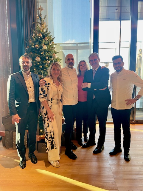 Il Ristorante Niko Romito, al 40mo piano del Bulgari Hotel, è l’ultima apertura, in ordine temporale, nel panorama del fine dining italiano a Tokyo. In soli otto mesi ha già ottenuto importantissimi riconoscimenti con la sua cucina italiana pulita da ogni eccesso che va al cuore dei sapori. Una piccola rappresentanza di Accademici, accompagnati da S.E. Ambasciatore Gianluigi Benedetti e dall'Accademica Onoraria Sabina D'Antonio, ha avuto la possibilità di assaggiare in anteprima il delizioso menù natalizio egregiamente preparato dal Resident Chef Mauro Aloisio. Una gioia per il palato e per gli occhi con le bellissime ceramiche Ginori. Felici anche di aver incontrato lo chef Niko Romito, presente in quei giorni a Tokyo.