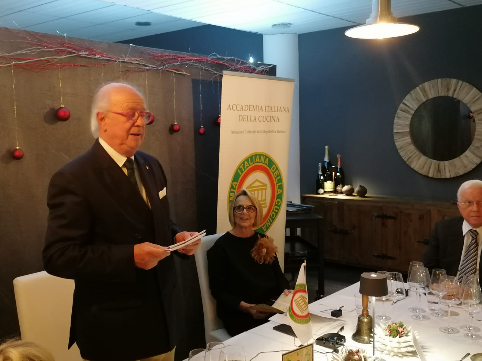 Nel suggestivo ambiente natalizio approntato stupendamente dalla proprietà del ristorante Desco, ubicato nel pieno centro di Ascoli Piceno, la Delegazione ha dato vita alla riunione conviviale con l’ausilio della Simposiarca Olga Piergallini, occupando un’intera sala ad uso esclusivo degli Accademici e dedicata al tradizionale scambio degli auguri. Il Ristorante occupa l’intero piano di una dimora gentilizia del 1500. All'evento è intervenuta una folta partecipazione sia di Accademici sia di illustri ospiti. Durante la manifestazione in cui sono stati consegnati i tradizionali cadeaux per gli Accademici, sono stati apprezzati i piatti a base di pesce preparati dallo chef Michele Alessandrini, in particolare tutti gli sfiziosi antipasti e il risotto mantecato alla zucca. I vini, tutti del territorio, sono risultati molto graditi. È stata un’occasione per godere, in compagnia, di un’atmosfera di serenità e di tranquillità prima delle festività natalizie.