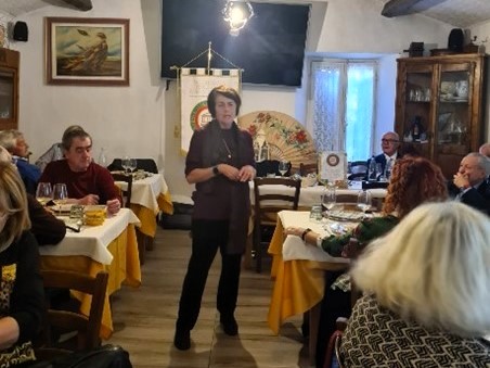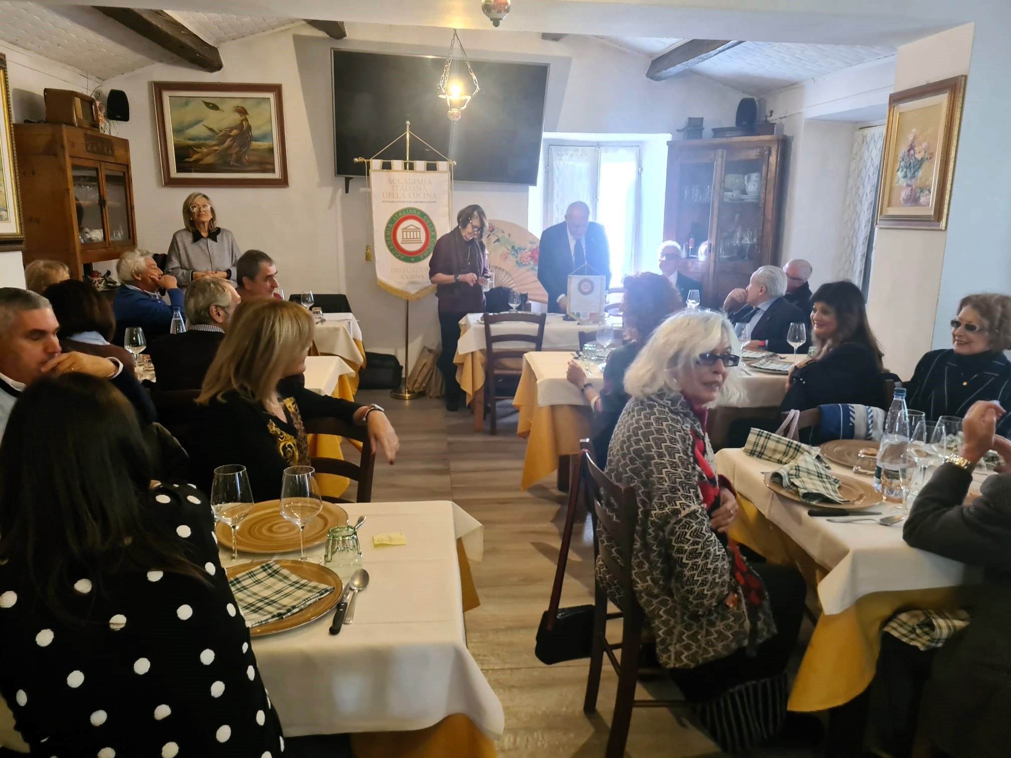 Si è tenuta a San Miniato, in occasione della 52^ Mostra Mercato del tartufo bianco pregiato delle colline sanminiatesi, la riunione conviviale congiunta delle Delegazione di Empoli e di Firenze presso il ristorante "Papaveri e Papere”. In occasione dell’incontro, la Delegazione di Empoli ha consegnato il Diploma di Buona Cucina 2023 allo chef Paolo Fiaschi (foto 1, a sinistra Delegato di Empoli Massimo Vincenzini, chef Fiaschi, destra Roberto Ariani Segretario Generale e Delegato di Firenze). Foto 2. Al tavolo Delegato Roberto Ariani, Delegato Massimo Vincenzini, il Coordinatore Territoriale Toscana Est Roberto Doretti, la Delegata della Versilia Storica Anna Ricci, la Delegata del Mugello Monica Sforzini. Foto 3. Un momento della serata.