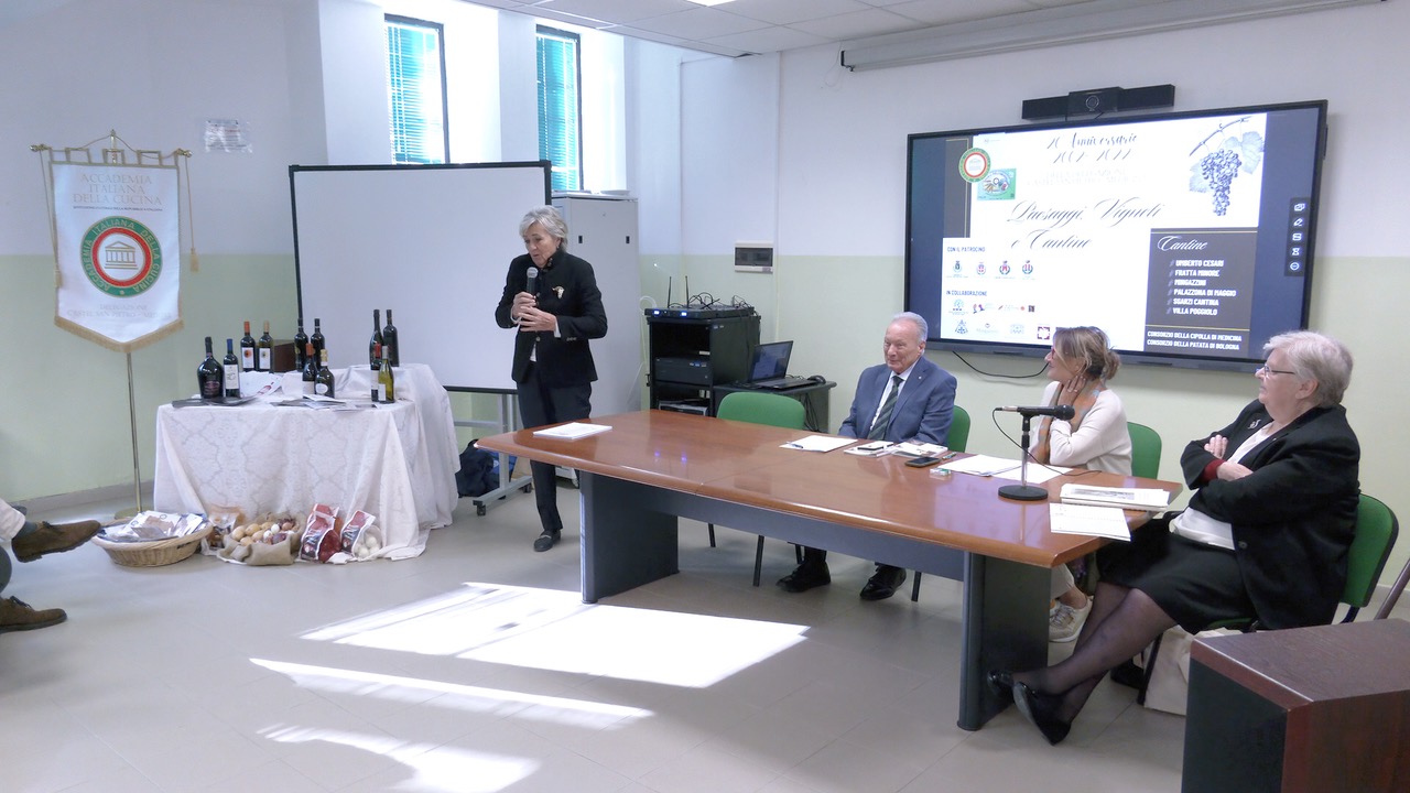 Consegna del “Diploma di Buona Cucina” al Cantacucco, ristorante sperimentato in più occasioni e che ha raccolto consensi. Simposiarca Margherita Beggi che omaggia i presenti di un suo lavoro fresco di stampa sul ruolo centenario del “magazzino formaggi di BPER Banca” e informa sul menù concordato, legato al periodo novembrino, e che declina l’uso di prodotti tipici del territorio con l’arte della cucina: castagne e marroni di Zocca, prodotti dell’aia padronale, patate di Montese, ricotta del Caseificio di Rosola, pere Rosselline di Missano. Il ristorante ha, in questi ultimi tempi, ricevuto altri riconoscimenti: con il premio dell’Accademia aggiunge il prestigio di una istituzione che ha presenze mondiali dedite a promuovere e difendere la Cucina italiana. Dagli “irti colli” di Zocca, da un luogo che si articola, osteria, enoteca, ristorante, fuori e dentro casa a seconda della stagione e delle richieste, parte un messaggio di conservazione e risorsa territoriale che si apre al mondo. Per questo la Delegazione ha consegnato il premio proprio durante la Settimana della Cucina Italiana nel Mondo dall’accattivante tema Il benessere con gusto, che stimola suggerimenti comprovati nel tempo confrontati a parametri contemporanei.