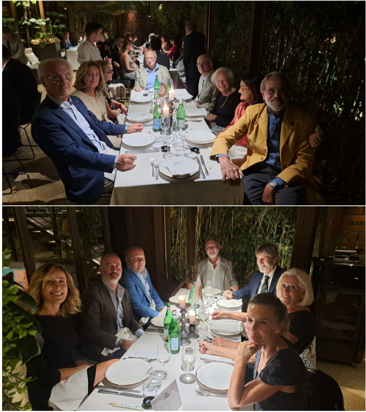 Al rientro dal periodo estivo, la Delegazione di Londra ha organizzato un apericena presso Enoteca Rosso, un locale nel cuore di Kensington che offre specialità italiane di ottima qualità. Una cinquantina di Accademici si sono dati appuntamento in una serata di grande convivialità, riprendendo contatto dopo la pausa estiva. Vini e aperitivi sono stati accompagnati da un menu, servito con grande efficienza dallo staff, che ha voluto rendere omaggio alla Regione Emilia Romagna, colpita da un disastro ambientale. Il menu comprendeva un tagliere emiliano di parmigiano reggiano invecchiato 24 mesi, crudo di Parma, coppa ferrarese con gnocco fritto, crostini di fegatini emiliani, crescione con spinaci, tortellini di carne con glassa di brasato, gnocchi emiliani serviti con ragù di porcini e fonduta di parmigiano e, per finire, pesche dolci con crema e torta al cioccolato Barozzi; il tutto accompagnato da Aperol, Select e Campari Spritz, Prosecco millesimato Zonin, Gavi di Gavi. Grazie alla Simposiarca, la Consultrice Elena Parigi Klat, e a tutto il personale di sala e cucina capitanato da Kim.