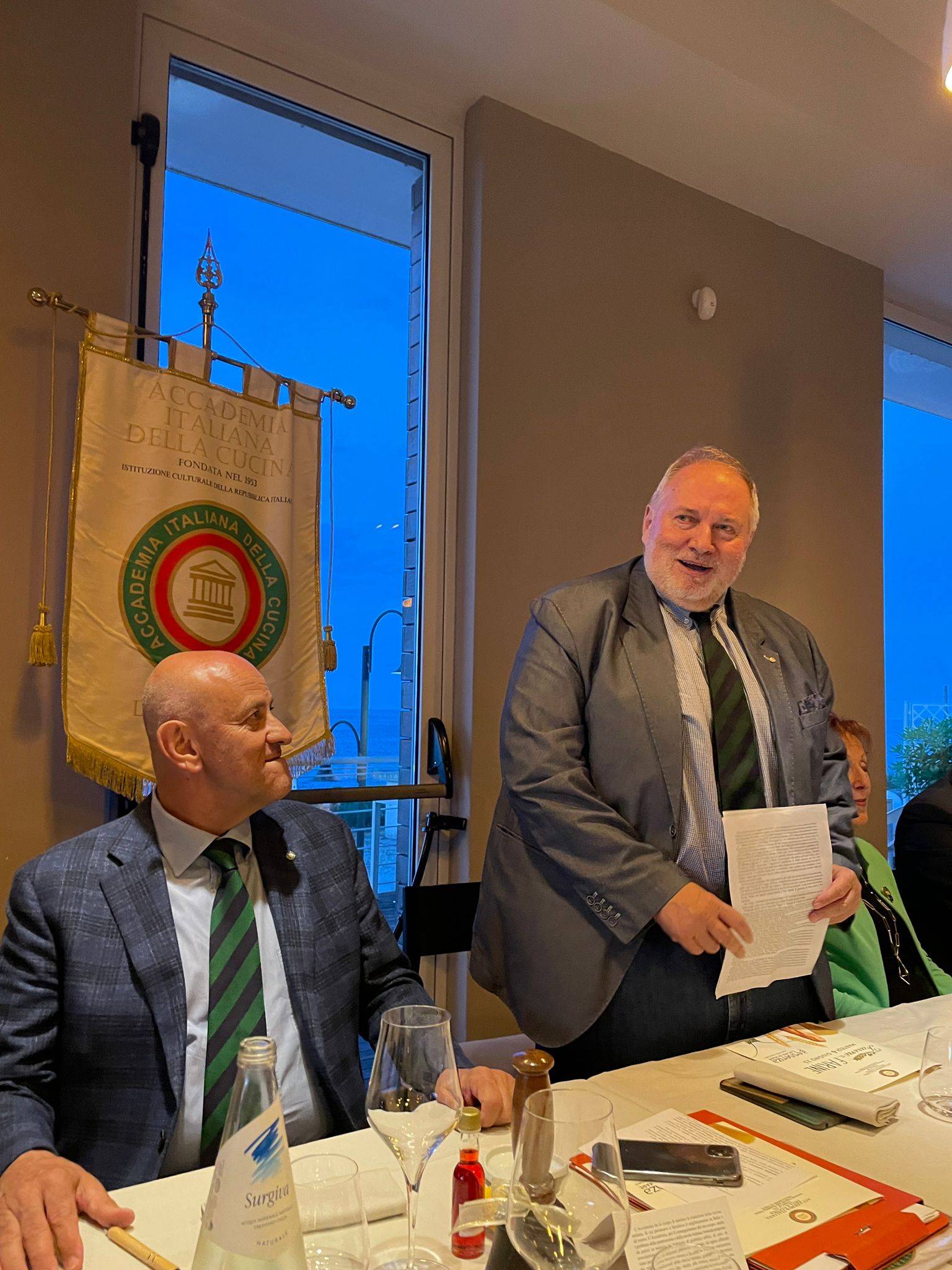 Si è svolta, presso il ristorante Ogliastrillo di Cefalù, la cerimonia di insediamento del nuovo Delegato di Cefalù Antonio Spallina. Dopo i saluti, il nuovo Delegato ha commemorato con un minuto di raccoglimento e un lungo ringraziamento per l’encomiabile attività svolta, Nicola Nocilla, già Delegato di Cefalù, recentemente scomparso. Lo hanno ricordato con riflessioni profonde e commoventi anche Rosetta Cartella, membro della Consulta Accademica e Delegata di Canicattì (foto 1), Daniela Nifosì, Coordinatrice Territoriale Sicilia Occidentale e Delegata di Palermo, Claudio Barba, Delegato di Agrigento, Nella Viglianti, Accademica di Cefalù. Un momento toccante è stato il ricordo del padre tracciato dalla figlia Laura come uomo e come professionista. È seguita la consegna, da parte di Rosetta Cartella, del distintivo al nuovo Delegato Spallina (foto 2); il suono della campana ha dato inizio alla riunione conviviale con un ottimo menù a base di pesce (foto 3).