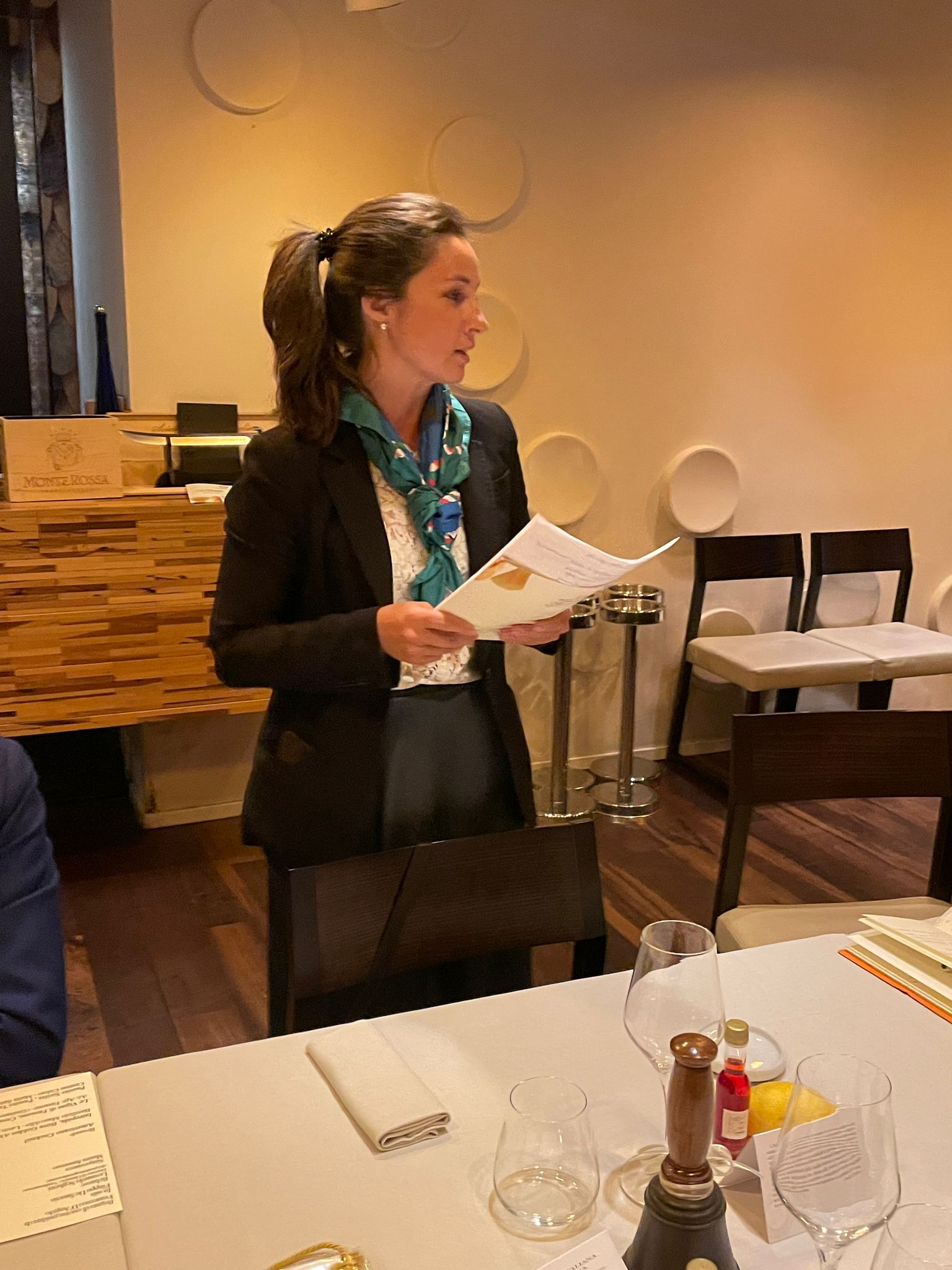 In un palazzo ottocentesco, gli Accademici sono stati accolti da Lorenzo Albrici, bellinzonese di nascita, che qui da più di vent’anni gestisce il suo ristorante Locanda Orico, insignito dall’Accademia con il Diploma di Buona Cucina 2020. Il menu proposto per la riunione conviviale, connubio tra i sapori italiani e quelli francesi e ispirato alla massima qualità, è stato realizzato con prodotti freschissimi di prima scelta, per una cucina leggera che non altera gli alimenti e i sapori e che ha conquistato gli Accademici. È seguita poi la presentazione dell’ospite Marco Colombo, direttore commerciale della Tre Valli Gastropartner SA, che ha parlato del Ticino orticolo e dei fattori: qualità, stagionalità e freschezza. Il Delegato, a nome di tutta la sua Delegazione, ha poi ringraziato la Console d’Italia a Lugano, Carla Brugnoli, che tra qualche settimana terminerà il suo mandato per fare ritorno al Ministero degli Affari Esteri. La Console ha costantemente dimostrato una particolare sensibilità ed attenzione nei confronti dei valori storici e culturali della tradizione culinaria ed enologica italiana. Foto 1(da sinistra) Lo chef Albrici e il Delegato Casati. Foto 2. Il Delegato Emilio Casati e la Console d’Italia a Lugano Carla Brugnoli. Foto 3. Il menu. Foto 4. Petto di faraona delle Landes dorata al forno, spugnole cremose, purea di pommes rattes, verdurine del piano di Magadino.