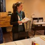 Serata dedicata alla conoscenza della razza di bovini Scottish Highland allevati nell'Azienda Agricola Montana di Giovanni Reggiani nella Baraggia Biellese. I Simposiarchi Giovanni Bonino e Gianni Maffeo (in foto 1 con la Delegata Maria Luisa Bertotto) hanno invitato il titolare Reggiani ad illustrare la storia della tenuta che lavora in modo biologico allevando non solo bovini, ma anche producendo riso Carnaroli DOP della Baraggia Biellese e Vercellese e vino Nebbiolo. Prima della cena nell'agriturismo Tenuta La Valletta (foto 2), gli Accademici hanno visitato la cantina della Cascina Piana dove si produce il Nebbiolo dell'azienda. La cena si è basata sulla carne Highland, declinata in diversi modi di cottura e di presentazione (foto 3: risotto; mini hamburger e tartare di Highland Beef Bio). Foto 4. Delegata e chef Fabio Cova.
