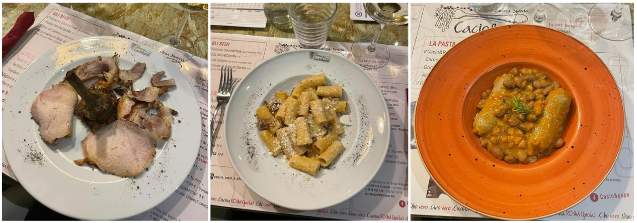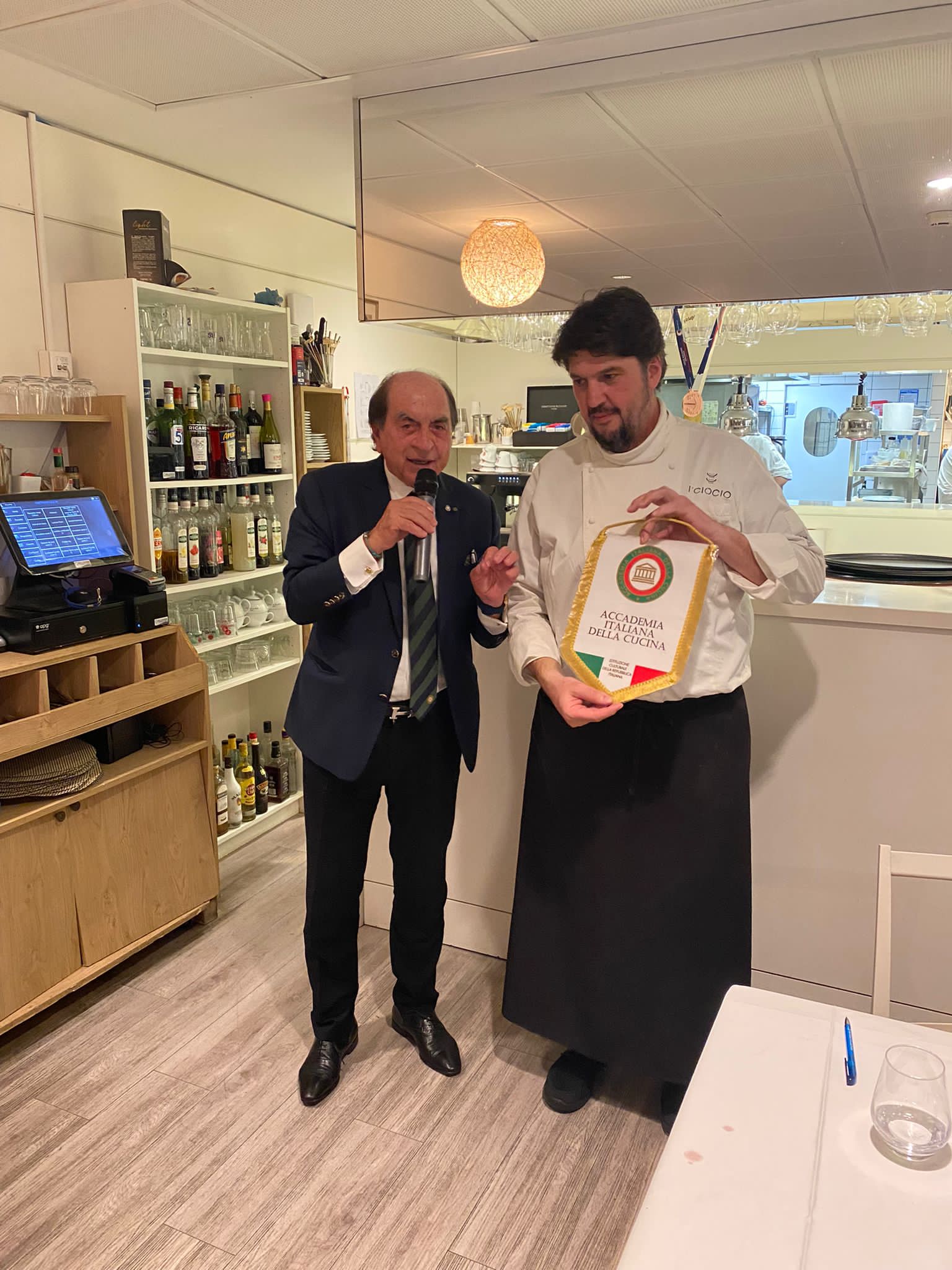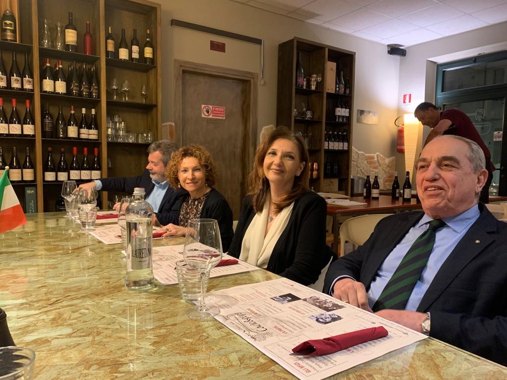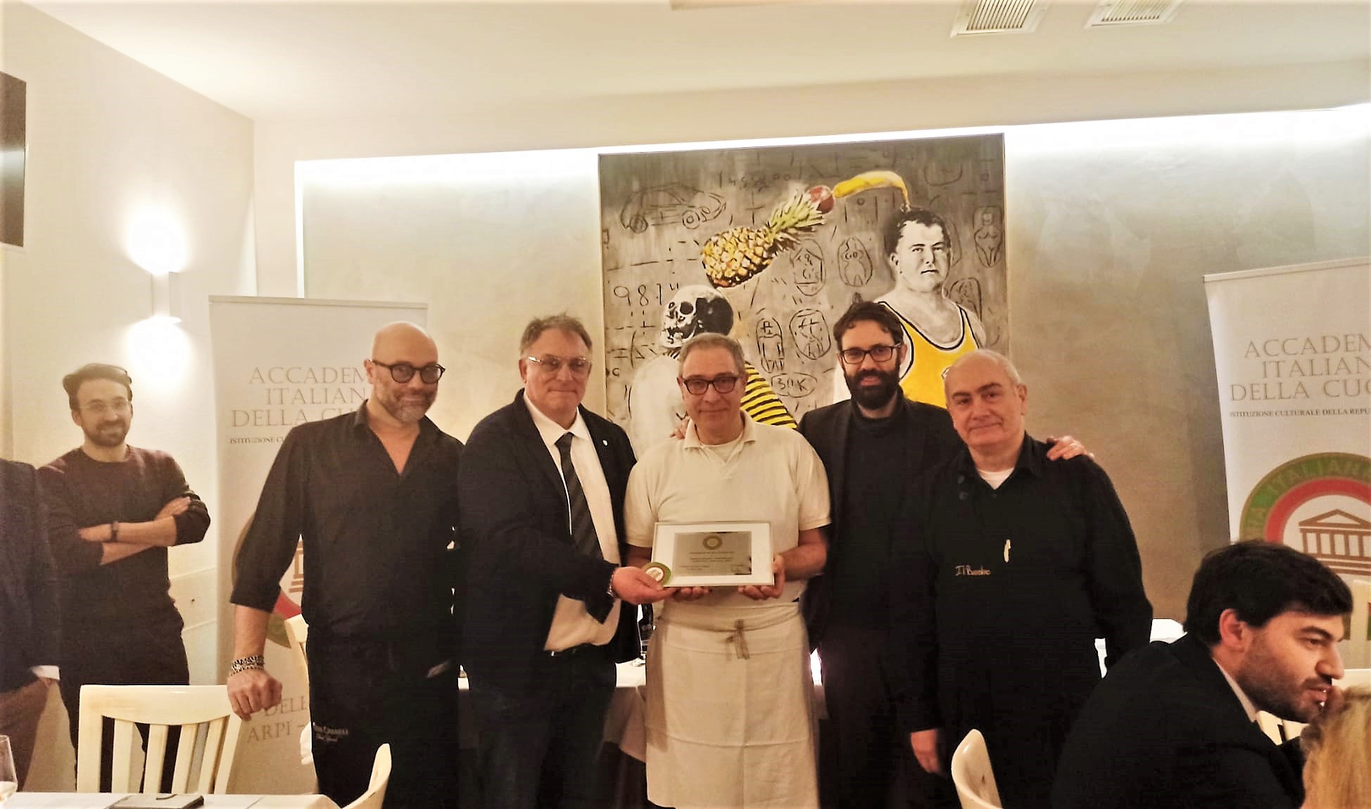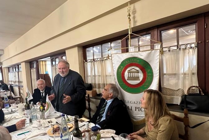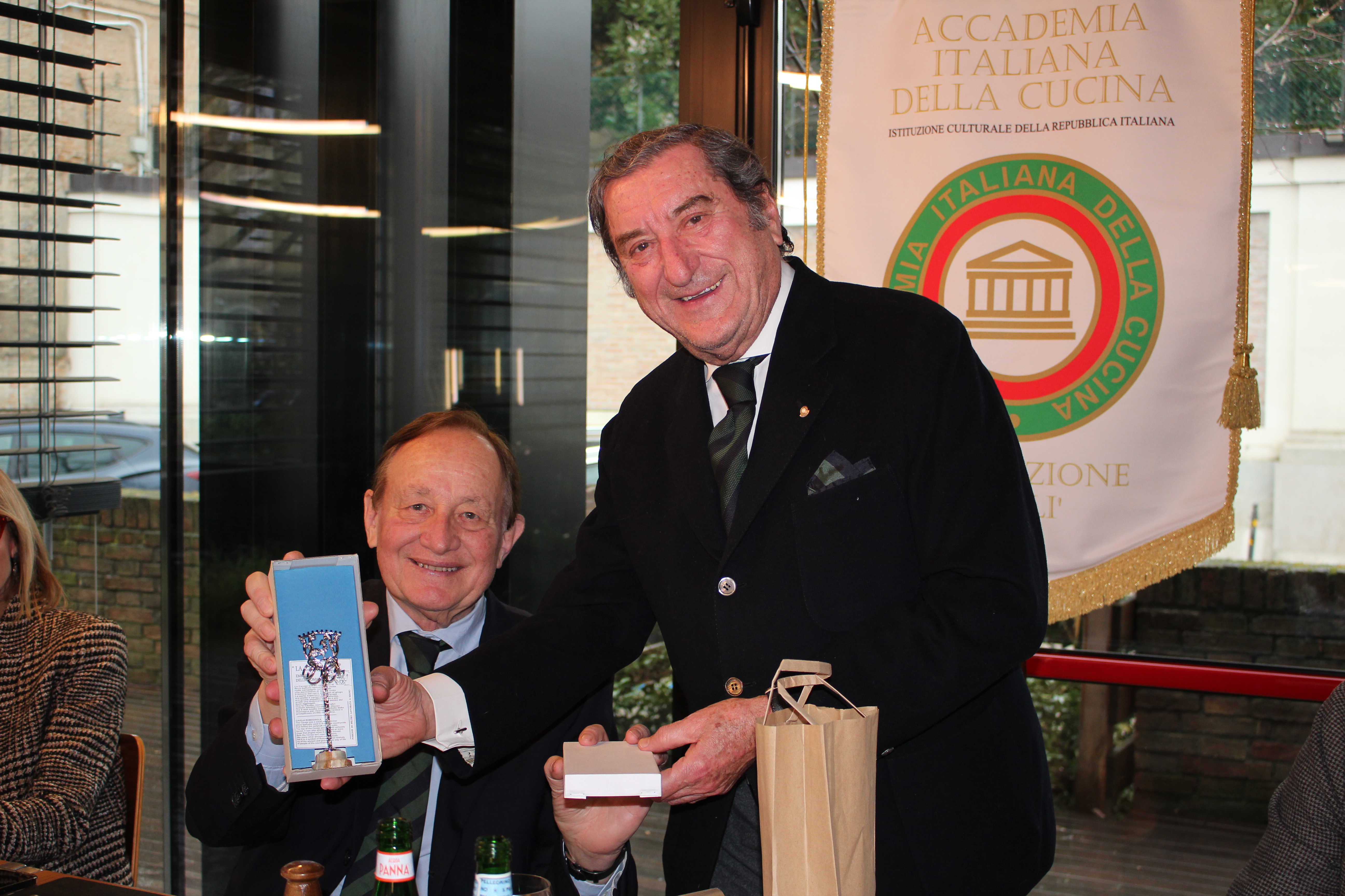 Riunione conviviale presso il ristorante "Cacio&Pepe" in San Marino organizzata dall'Accademico Simposiarca Cesare Tabarrini (foto 1), amante della cucina romana, e illustrata dall'Accademico Simposiarca Stefano Valentino Piva (foto 2). Il titolo dato alla serata “La Cucina ROMA/gnola” fin dal suo inizio, ha fatto intuire che la cena avrebbe rappresentato la cucina romana elaborata e interpretata in un contesto Sammarinese. Dopo il benvenuto del Delegato Andrea Negri (foto 3), il Simposiarca Piva ha argomentato sulla celebre Porchetta d’Ariccia, una specialità della tradizione romana, presente in tutte le feste popolari e laziali, passando poi a descrivere la “pasta alla gricia”, primo piatto tipico della cucina romana. Nell'illustrare il secondo piatto “salsiccia e fagioli”, un grande classico della cucina, diffuso in tutte le regioni d’Italia, un piatto rustico e saporito, perfetto da gustare quando il freddo si fa sentire, il Simposiarca ha ricordato che fonda le sue radici nella tradizione contadina della zona della Tuscia. E per finire, le famose ciambelline romane: una ghiottoneria indimenticabile, un fiore all’occhiello del nostro patrimonio dolciario. Un dolce povero, che veniva cucinato con ciò che si aveva nella propria casa. La serata, ricca di colte e stimolanti curiosità grazie alla relazione dell’Accademico Simposiarca Piva si è rilevata all’insegna della cultura, del buon cibo e della condivisione in amicizia.